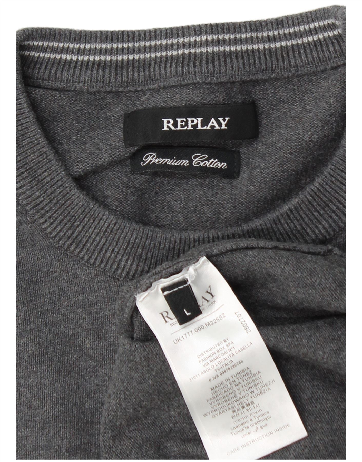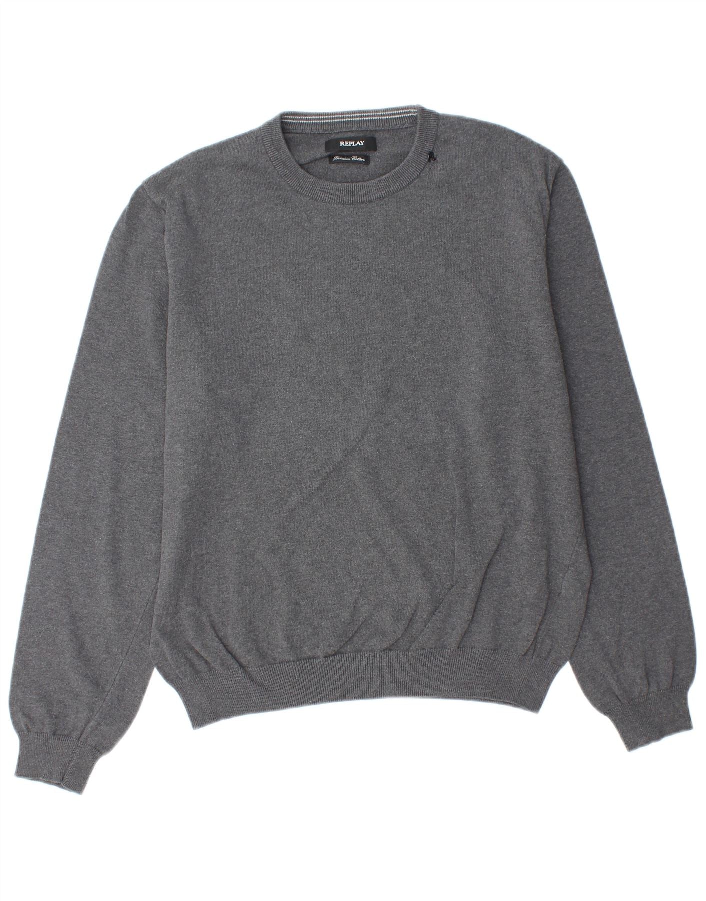 Мужской джемпер с круглым вырезом REPLAY, большой серый хлопковый свитер