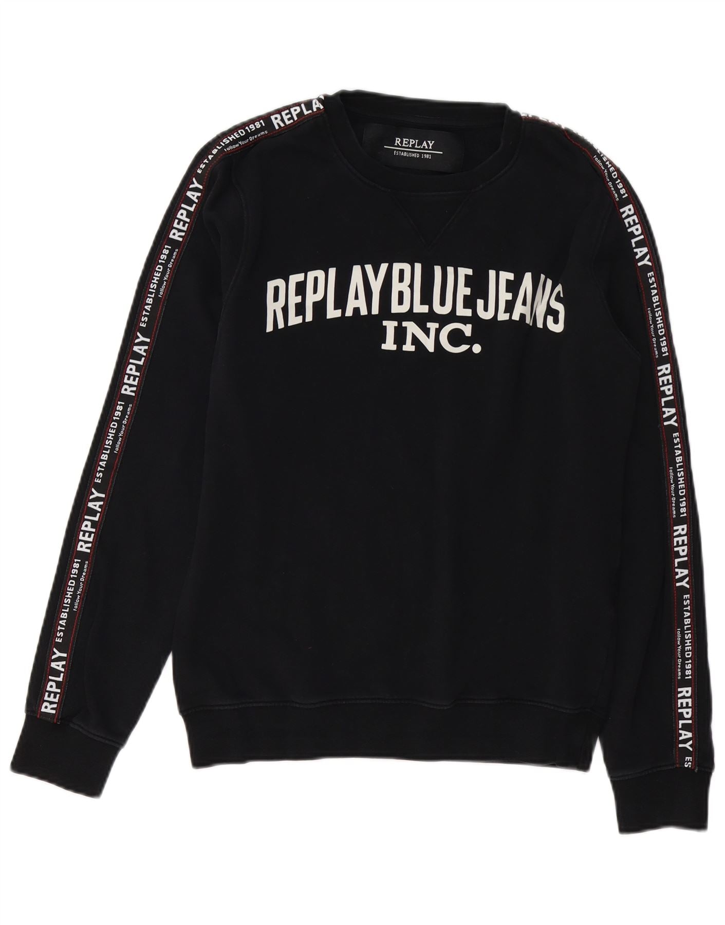 Мужской свитшот с рисунком REPLAY, джемпер среднего размера, черный хлопок, хлопок