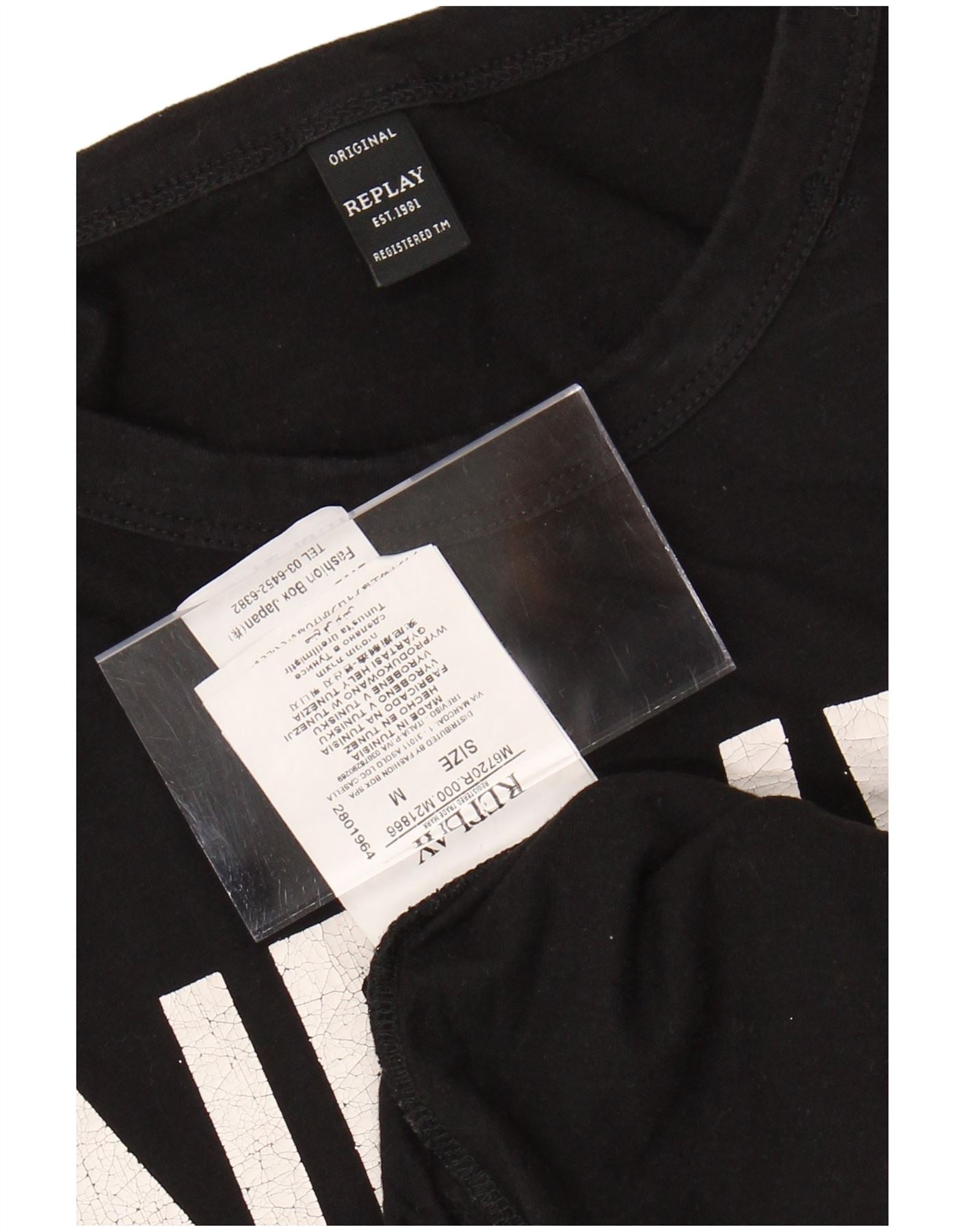 Мужская футболка с рисунком REPLAY, хлопковая, среднего размера, черная