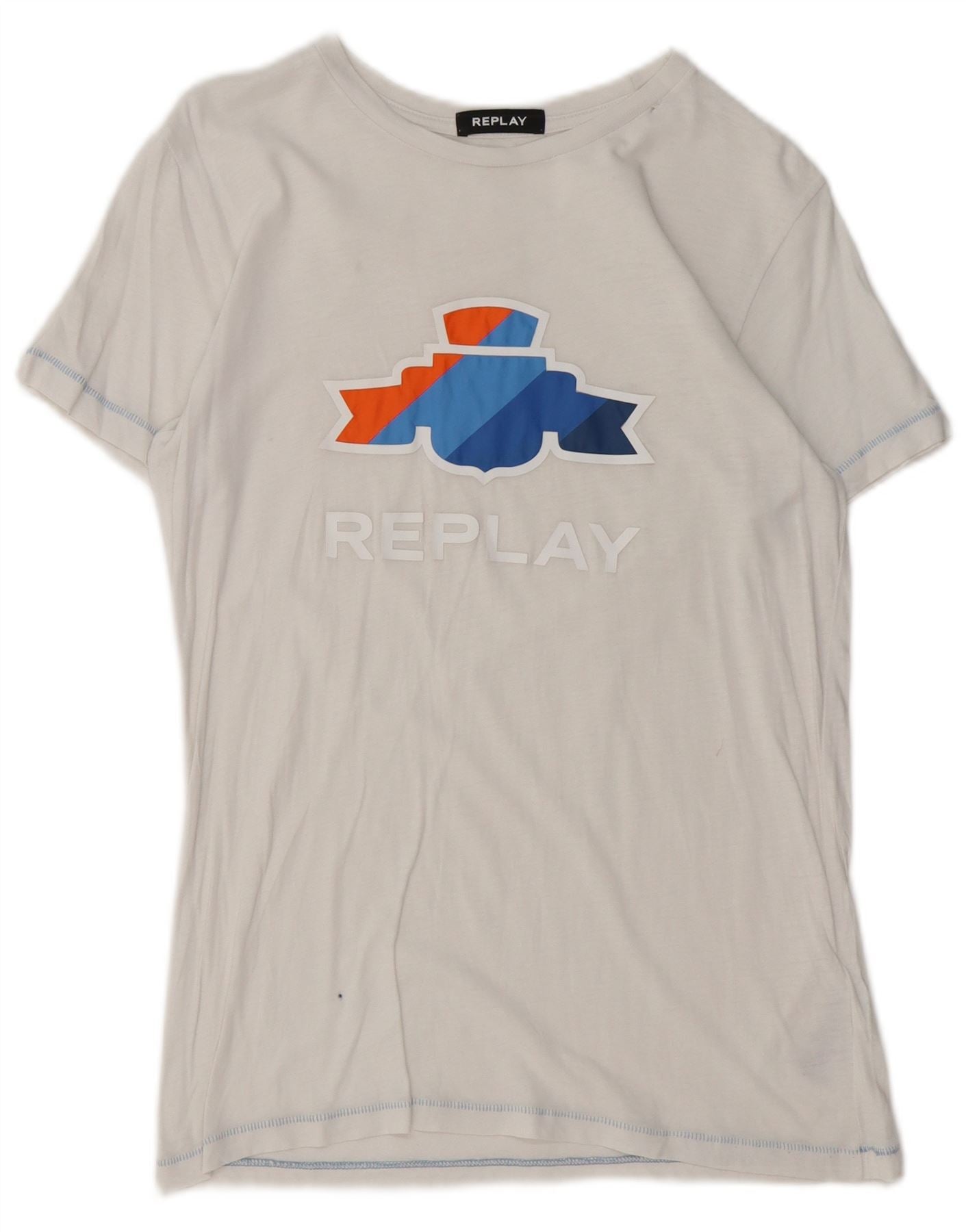 Женская футболка с рисунком REPLAY Top UK 12, средний размер, белый хлопок