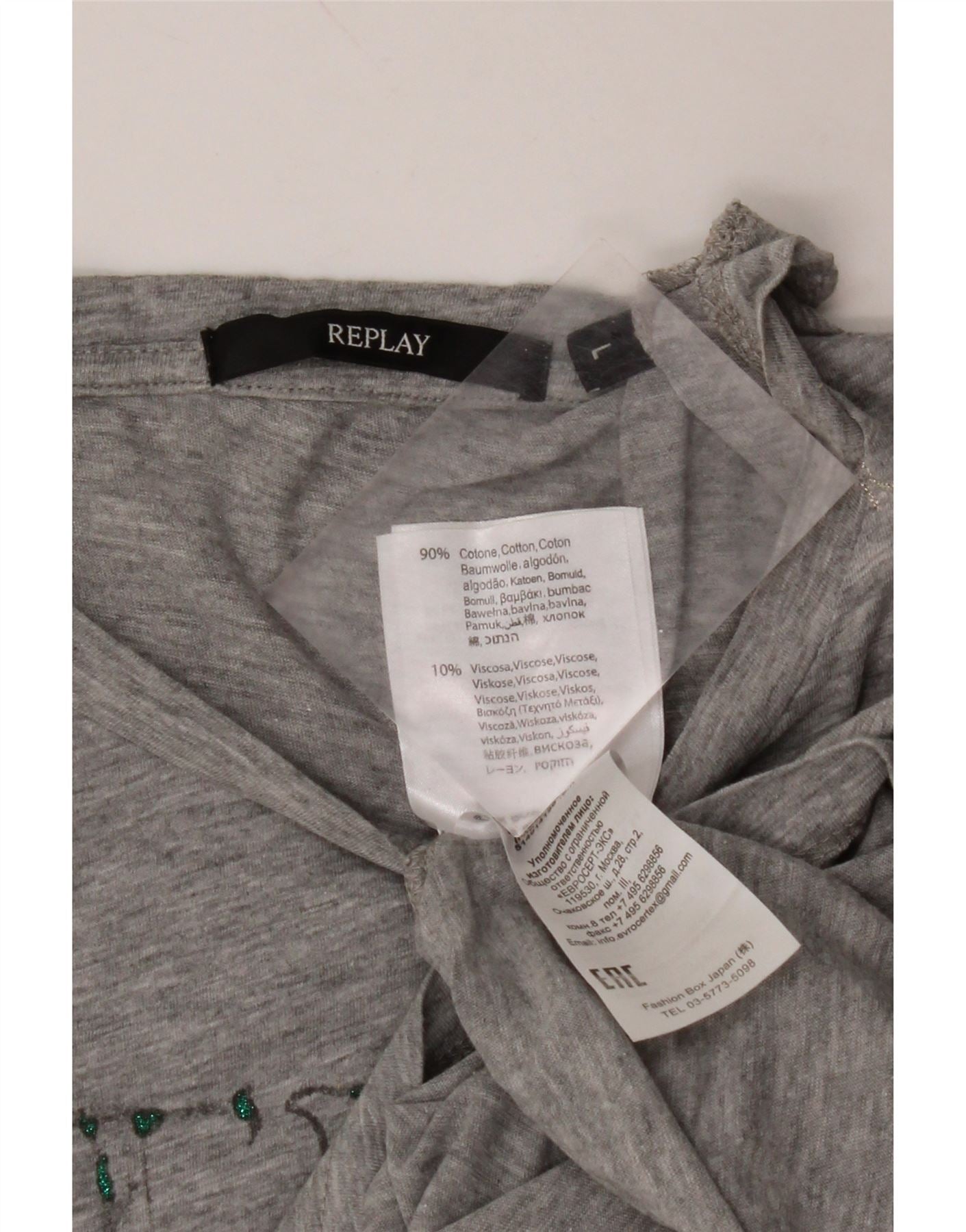 Женская футболка с рисунком REPLAY Top UK 16, большой размер, серый хлопок