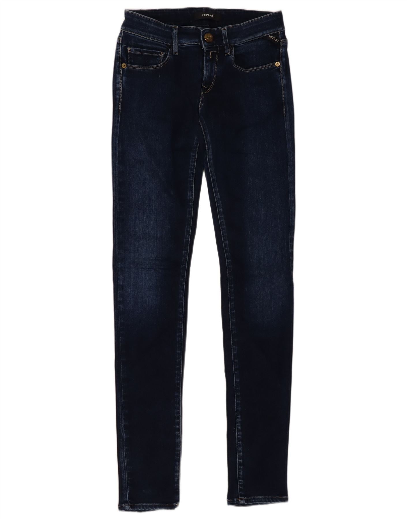 Женские джинсы скинни REPLAY розового цвета W24 L32 Темно-синие из вискозы
