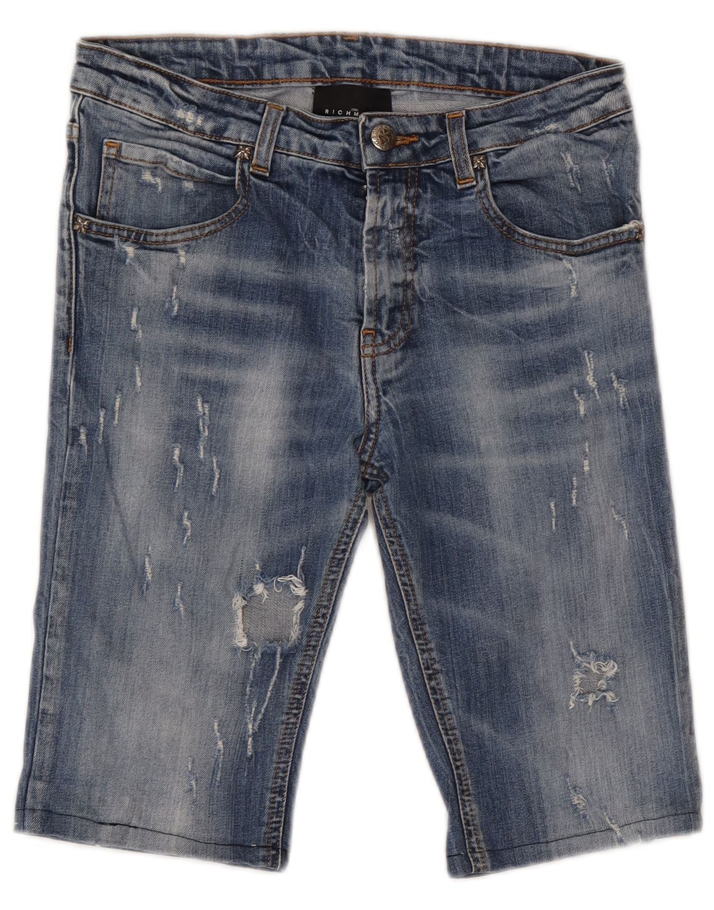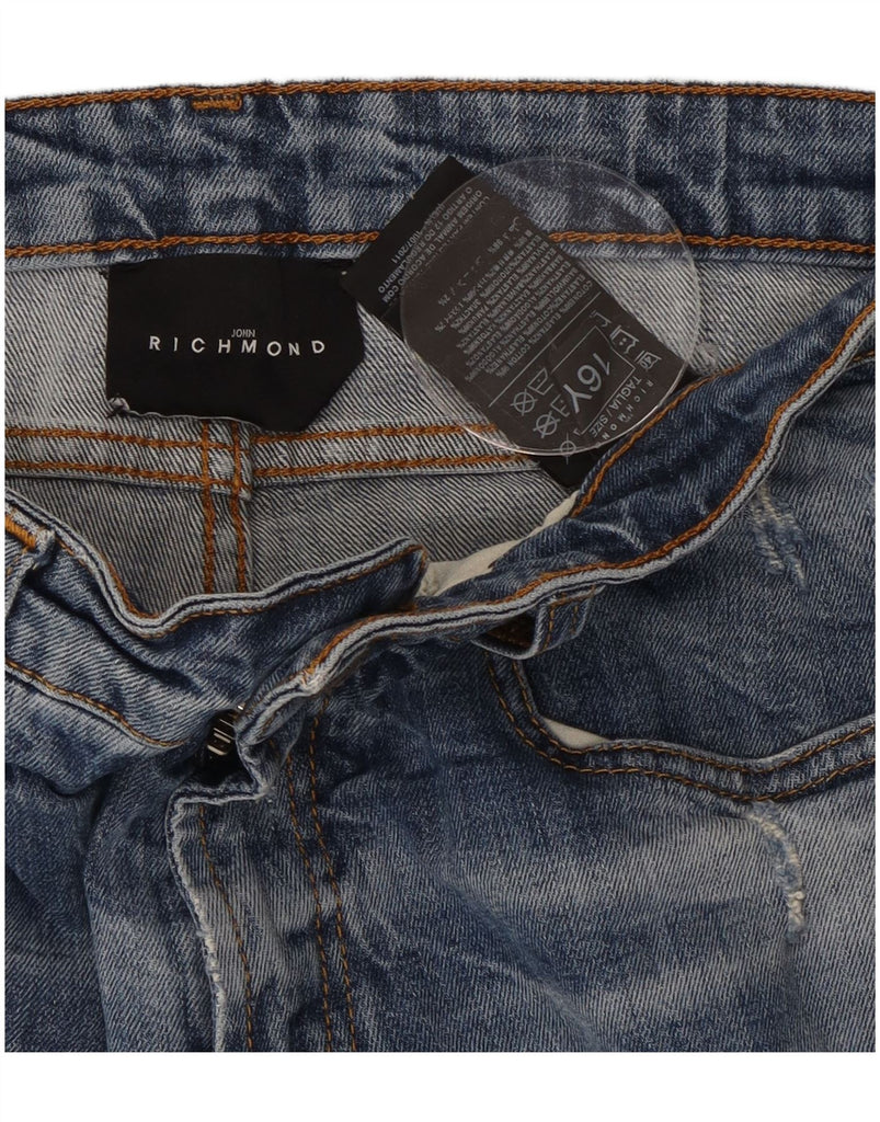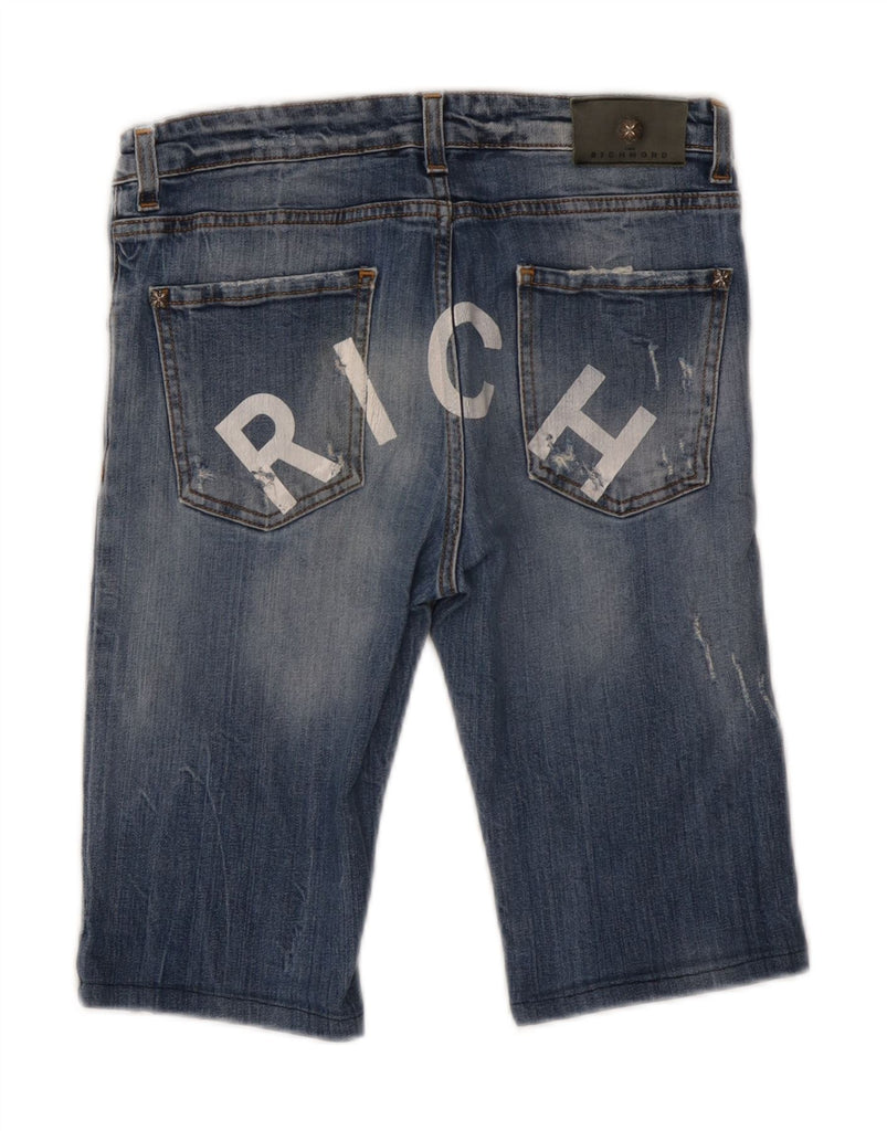 RICHMOND Boys Graphic Distressed Denim Shorts 15-16 Years W28 Blue Cotton