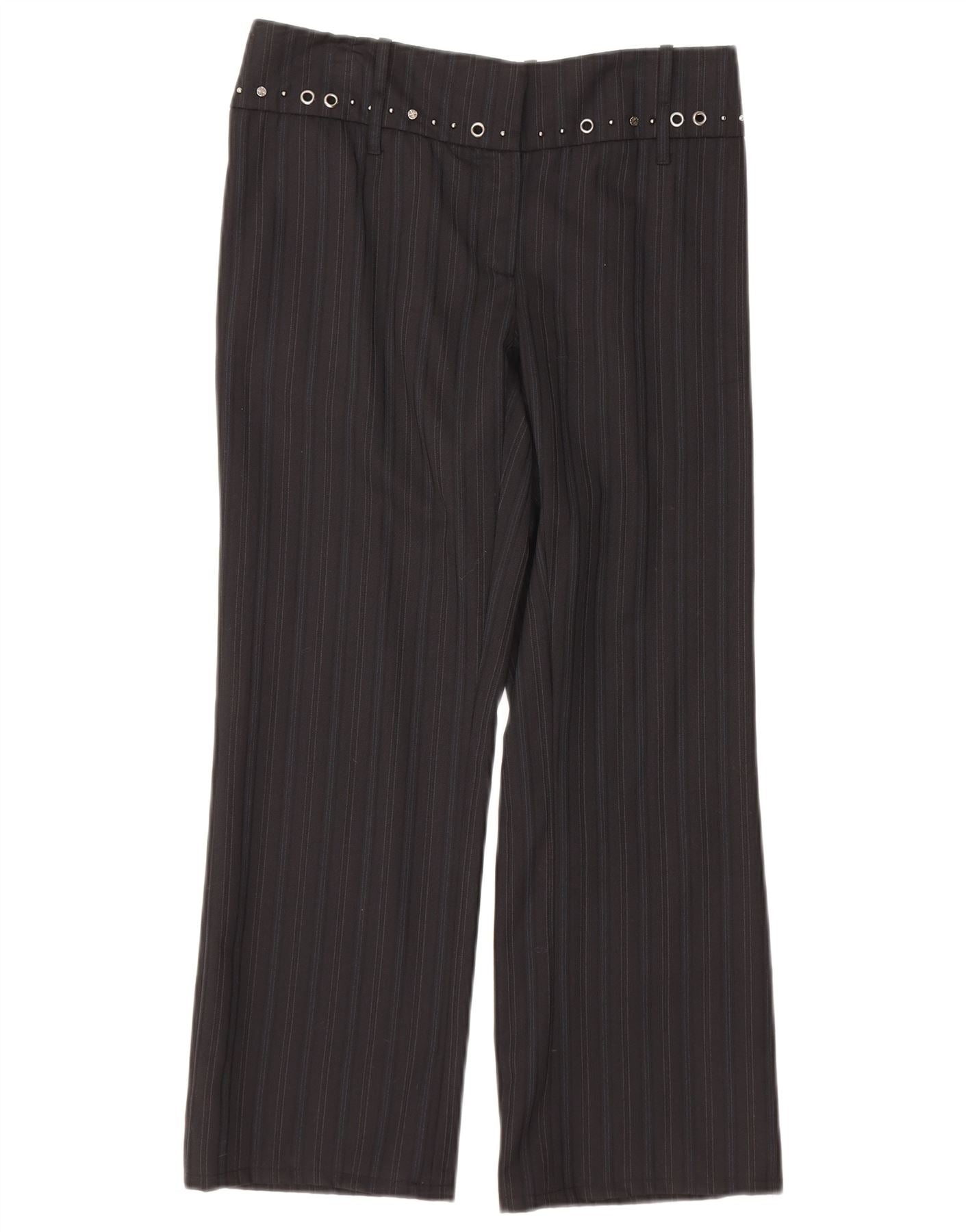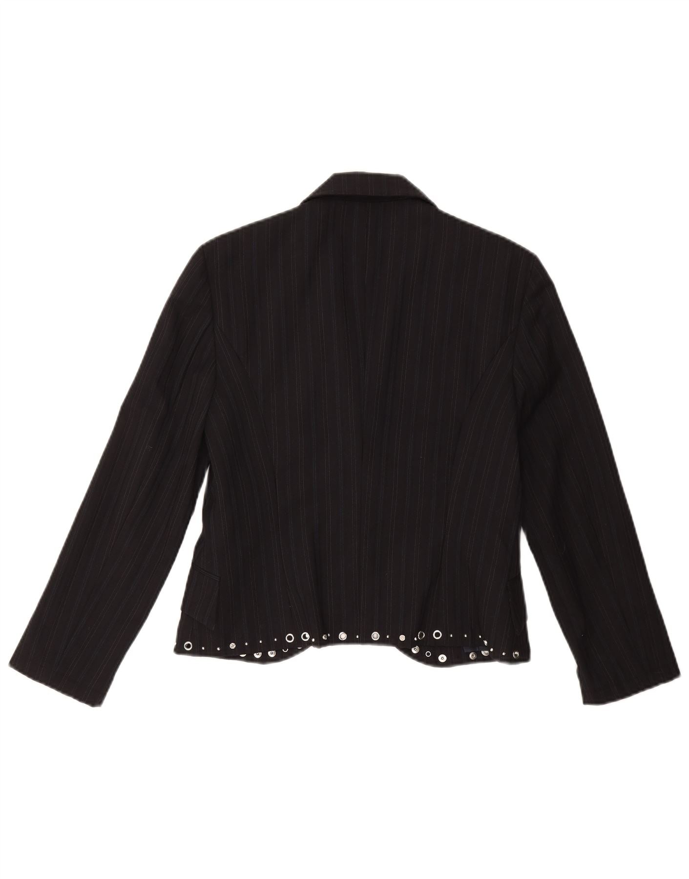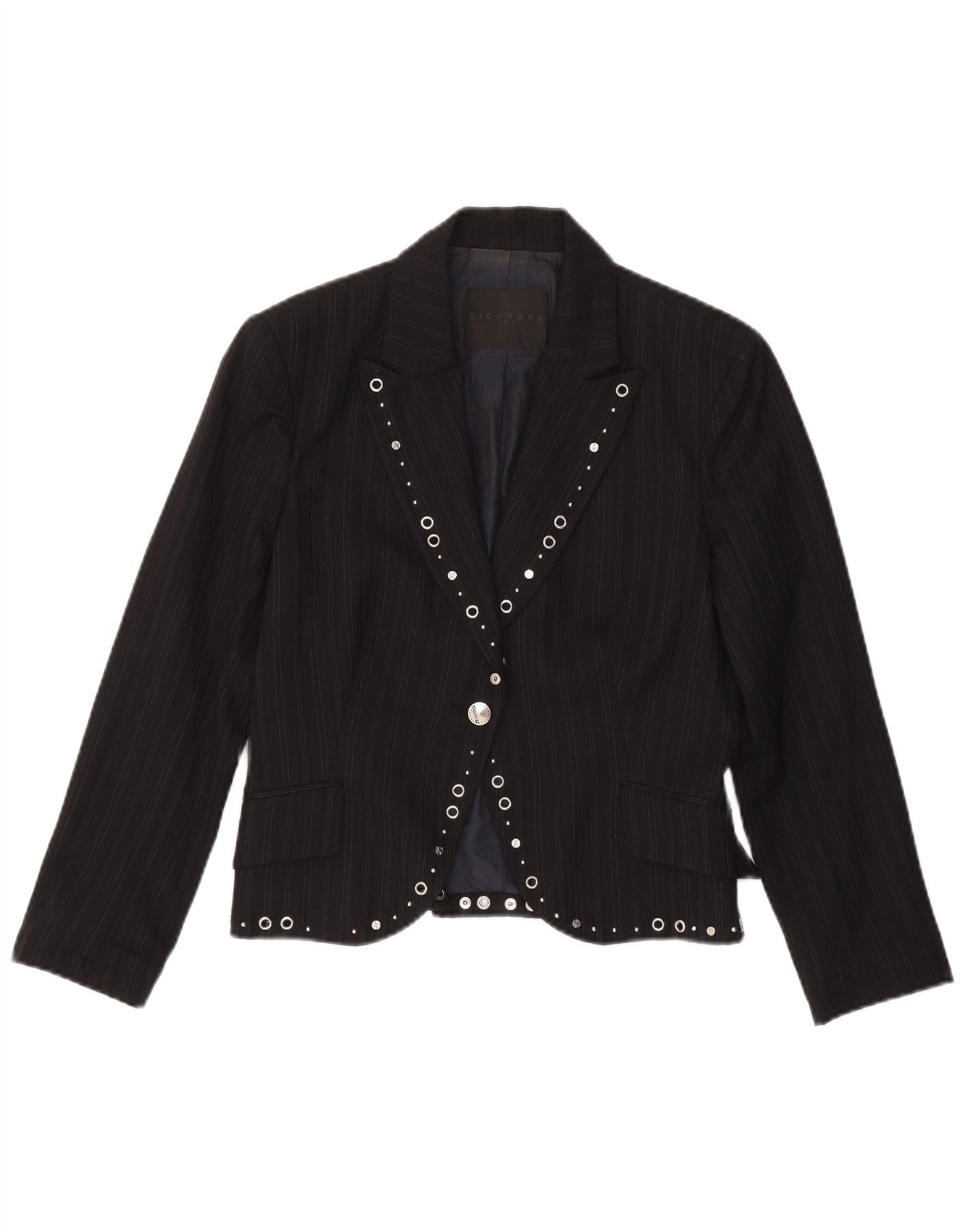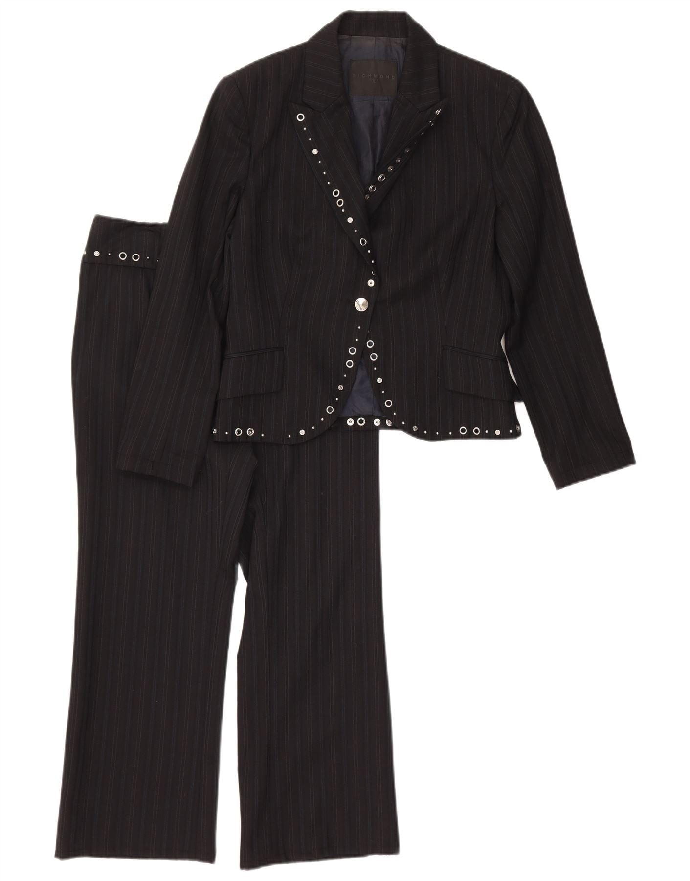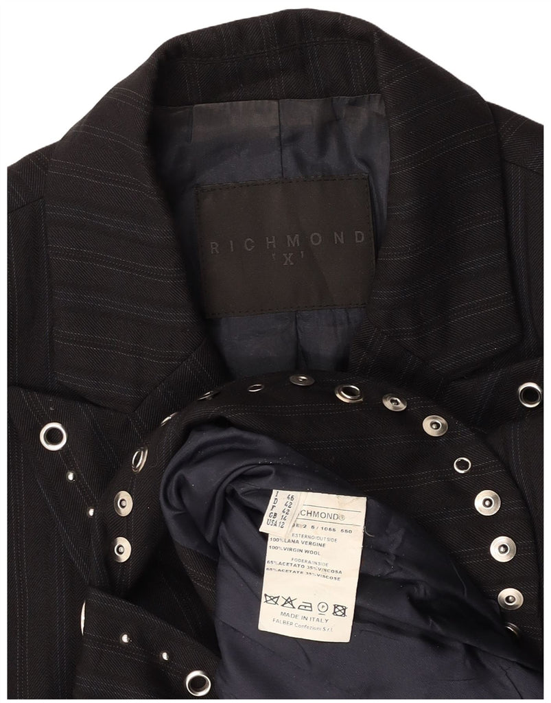 RICHMOND Womens 1 Button 2 Piece Suit UK 14 Large W30 L27 Black Pinstripe