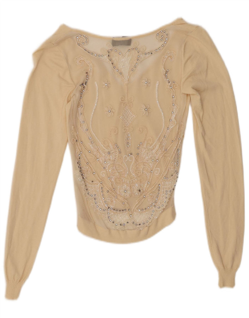 RICHMOND Womens Crop Long Sleeve Blouse Top IT 40 Small Beige Floral