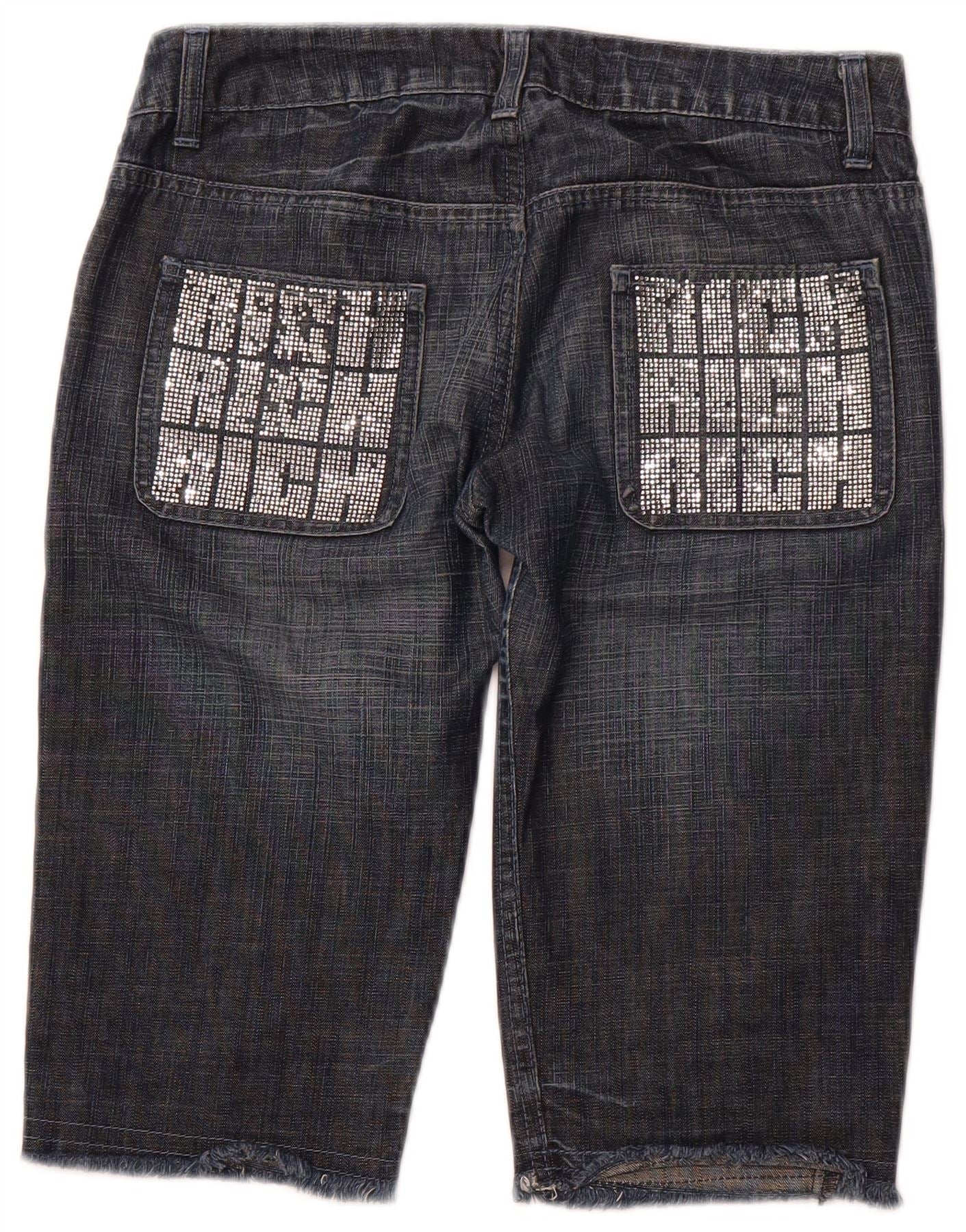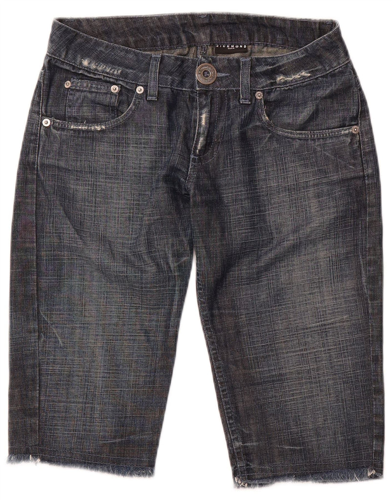 RICHMOND Womens Denim Graphic Bermuda Shorts W27 Small Navy Blue Cotton