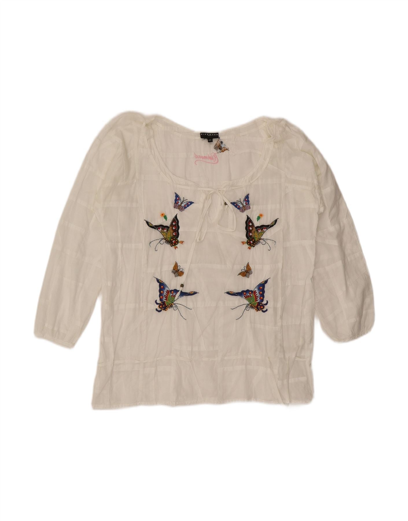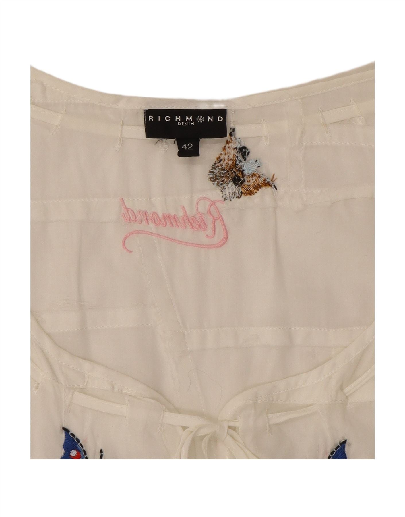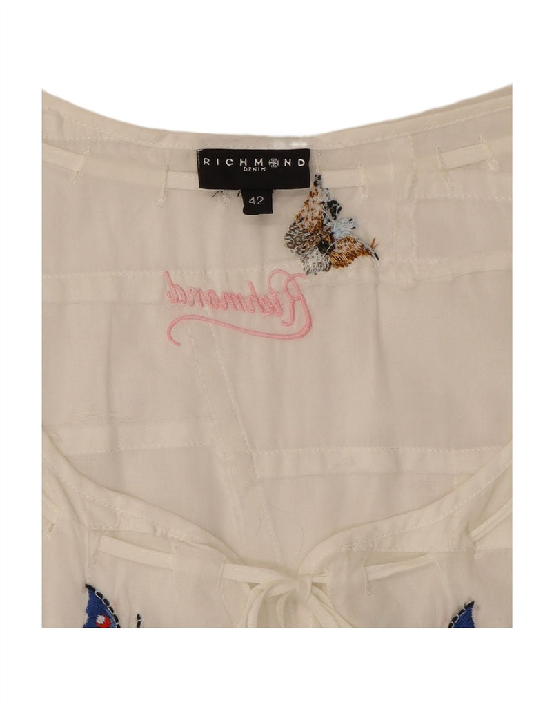 RICHMOND Womens Graphic Blouse Top IT 42 Medium White Butterfly