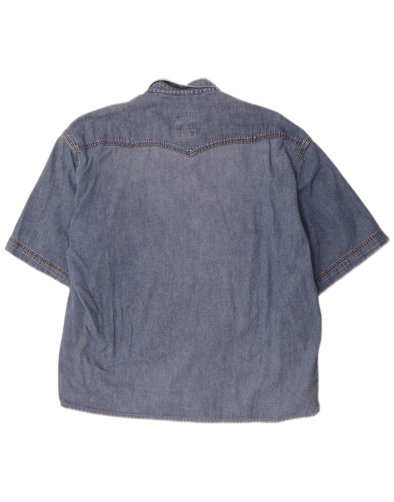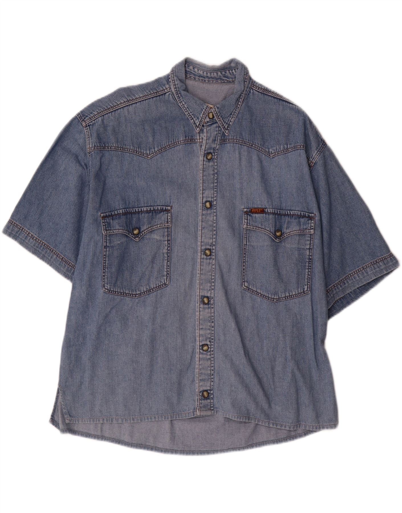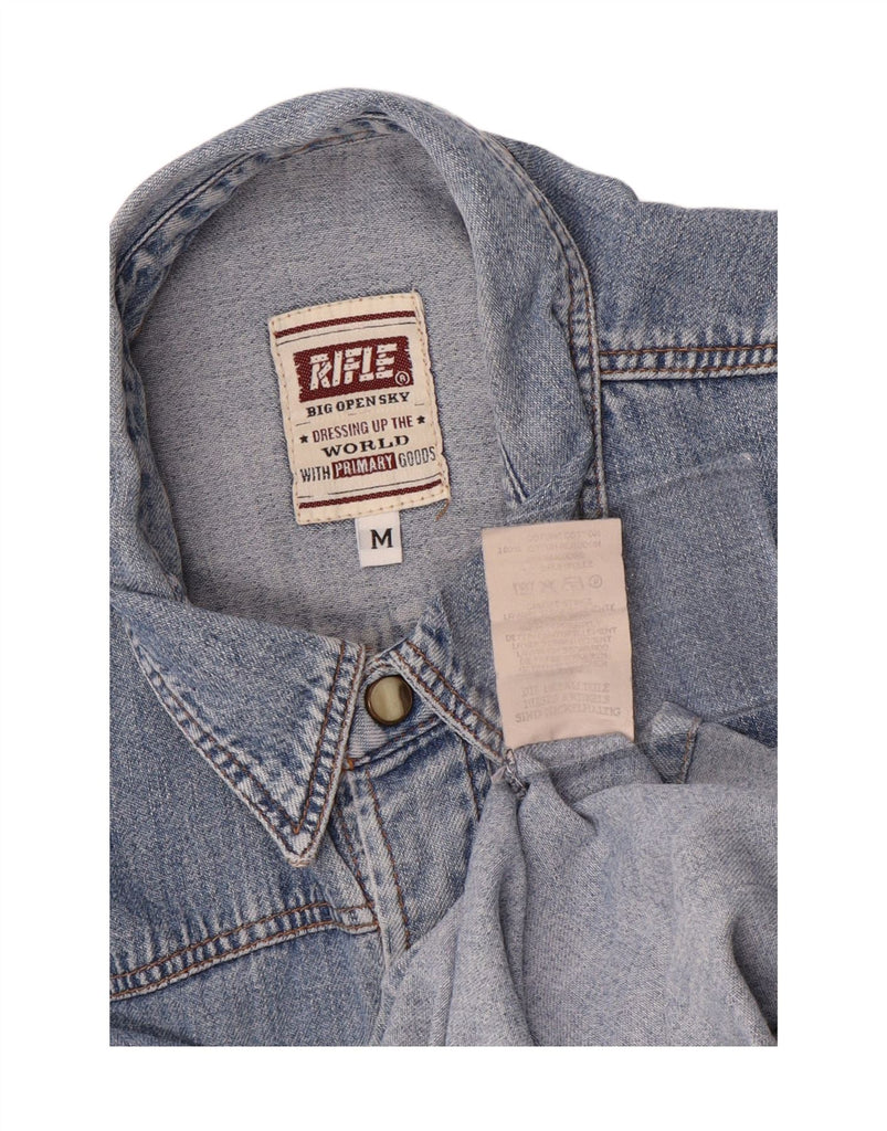 Мужская джинсовая рубашка RIFLE с коротким рукавом, хлопок среднего синего цвета