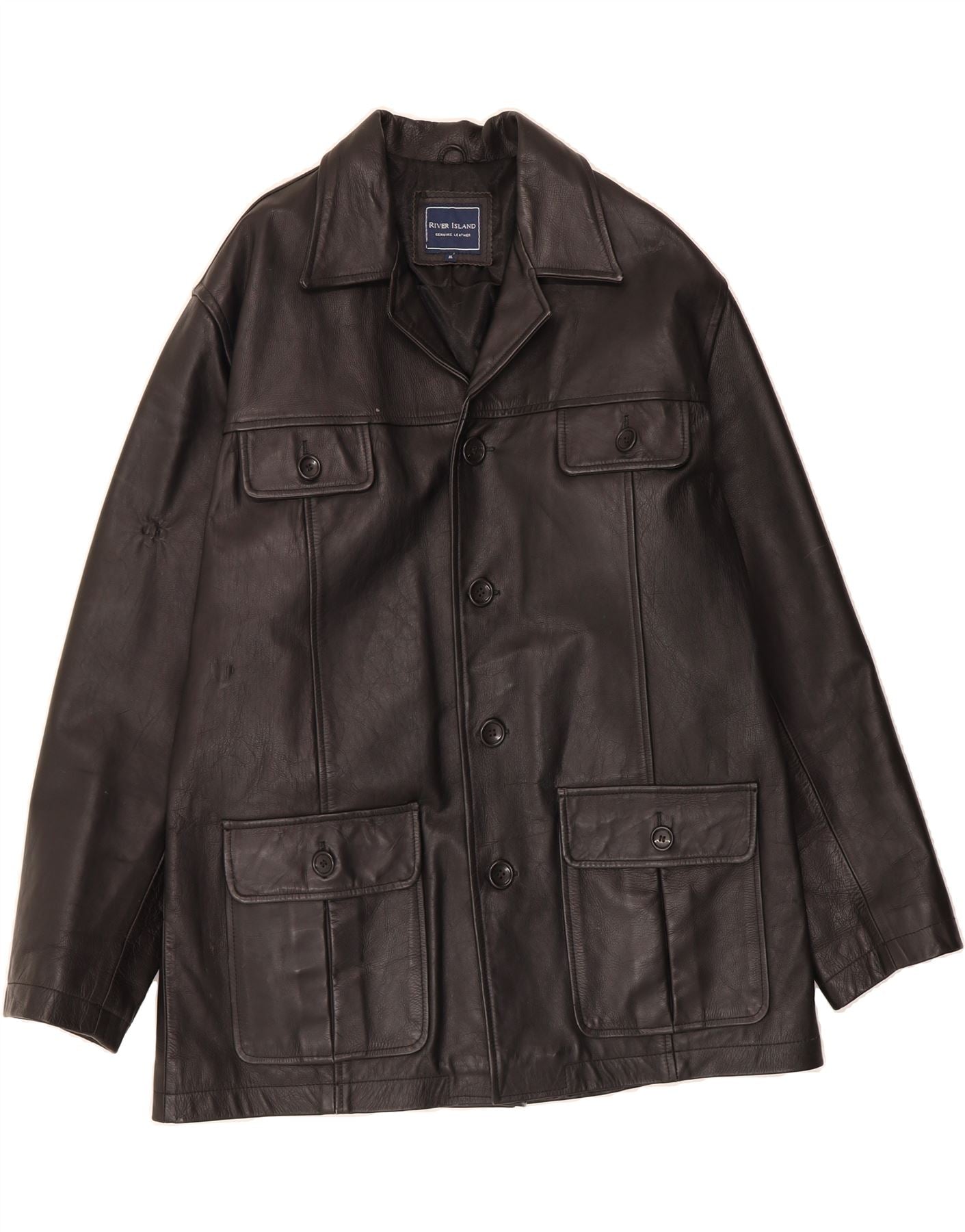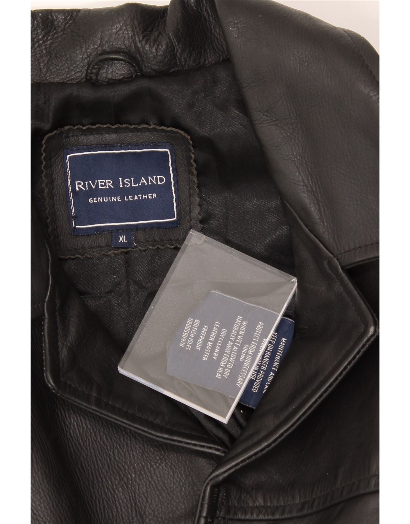 RIVER ISLAND Mens Leather Jacket UK 42 XL Black Leather