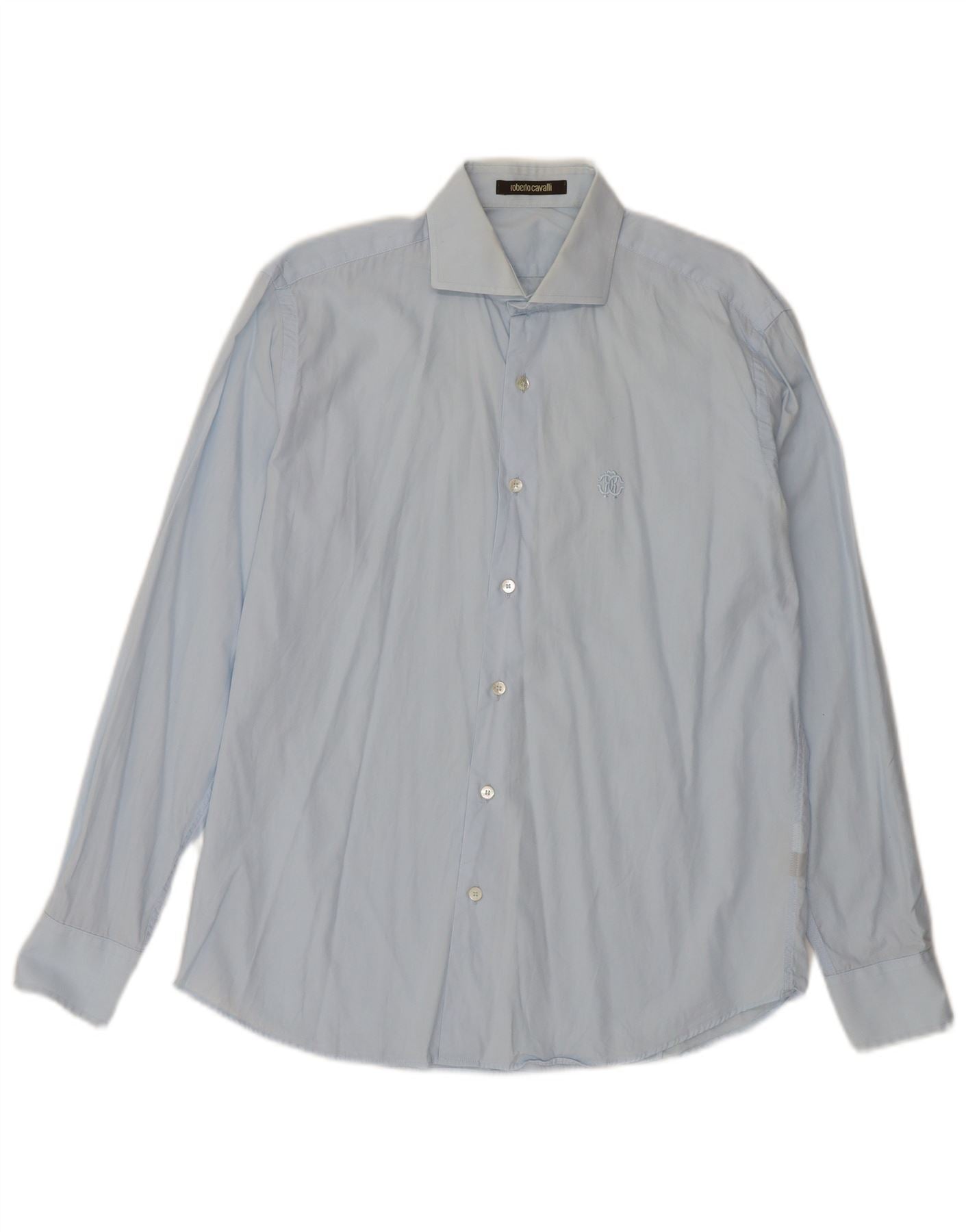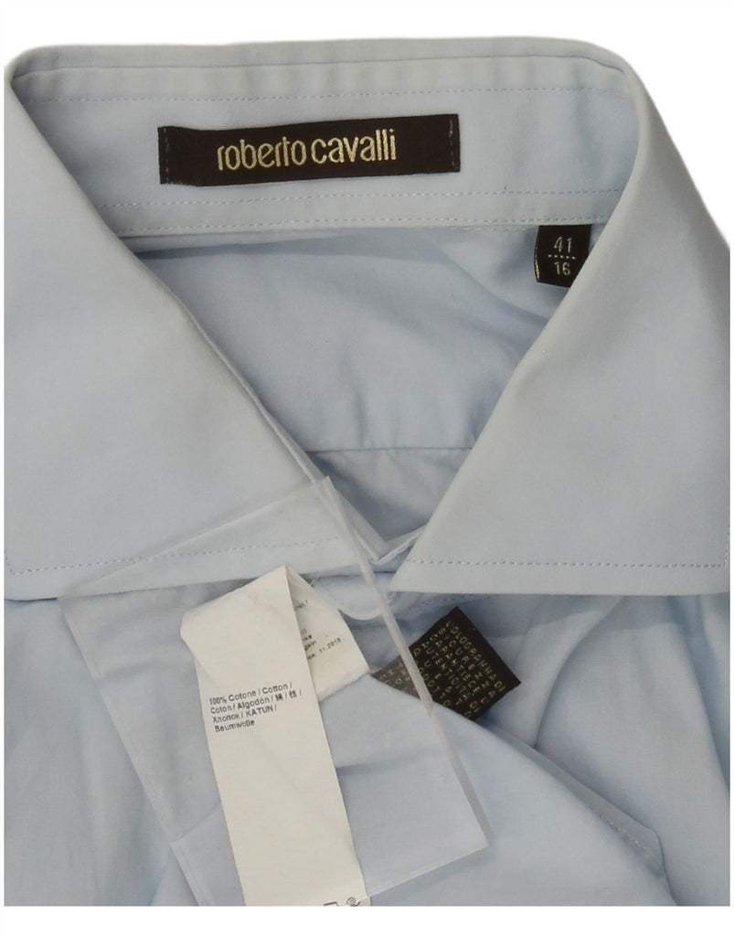 ROBERTO CAVALLI Mens Shirt Size 41 16 Large Blue Cotton