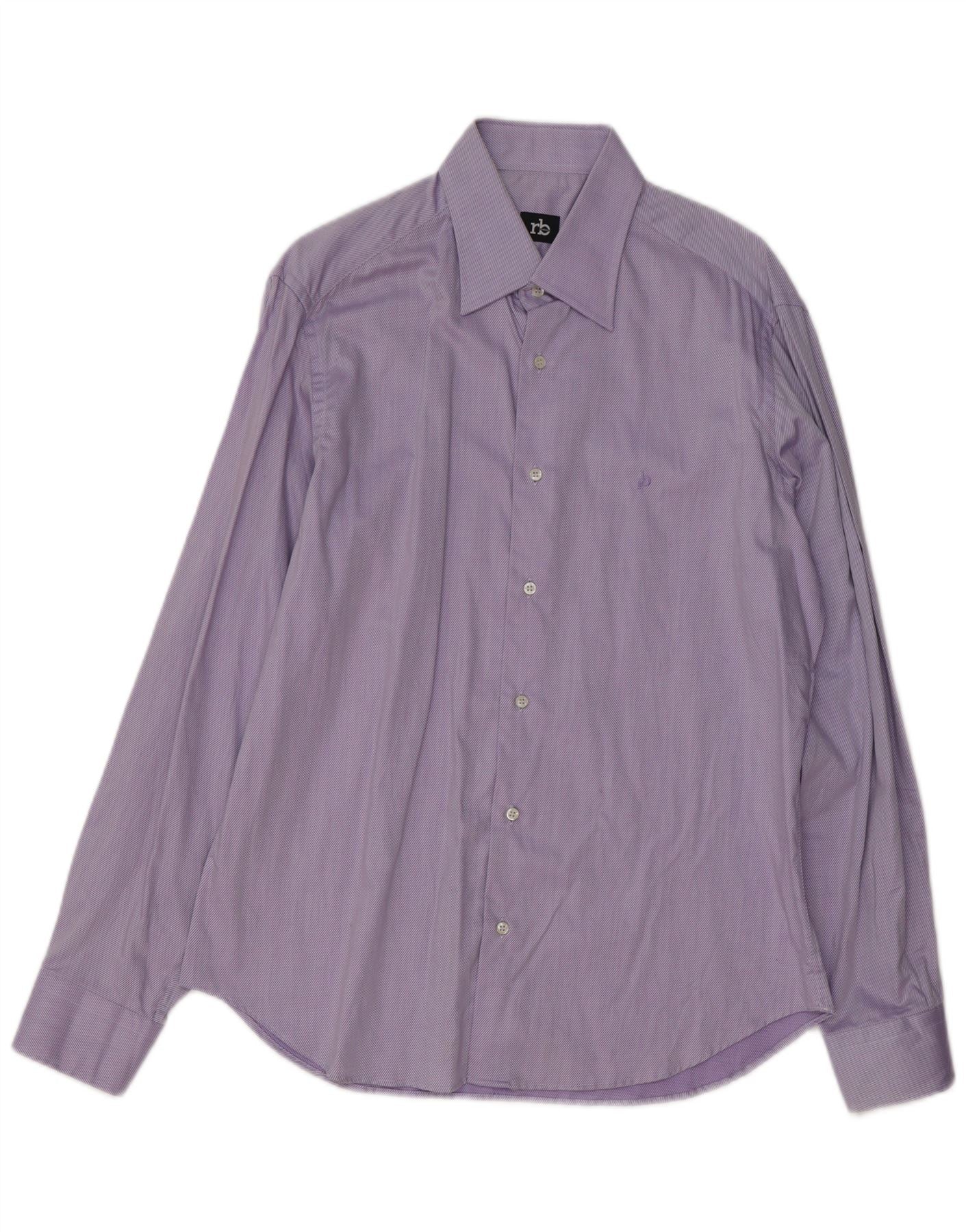 Мужская рубашка ROCCOBAROCCO, размер 41, 16, большая фиолетовая хлопковая полоска