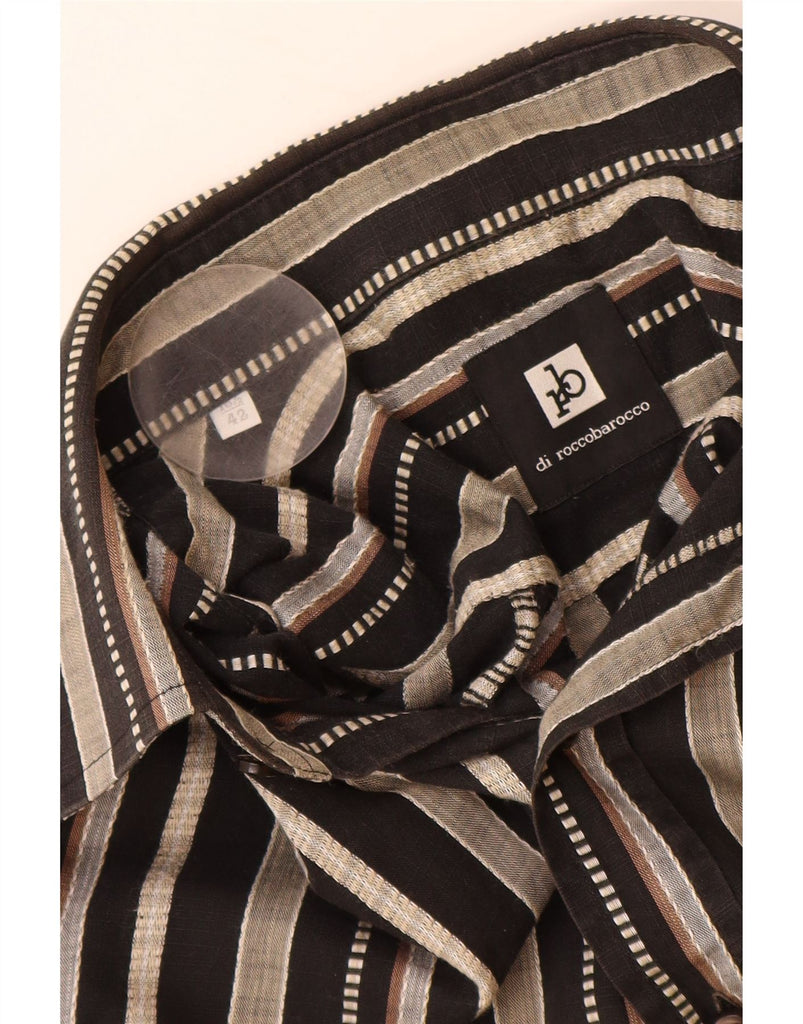 ROCCOBAROCCO Mens Short Sleeve Shirt Size 16 1/2 42 Large Brown Striped