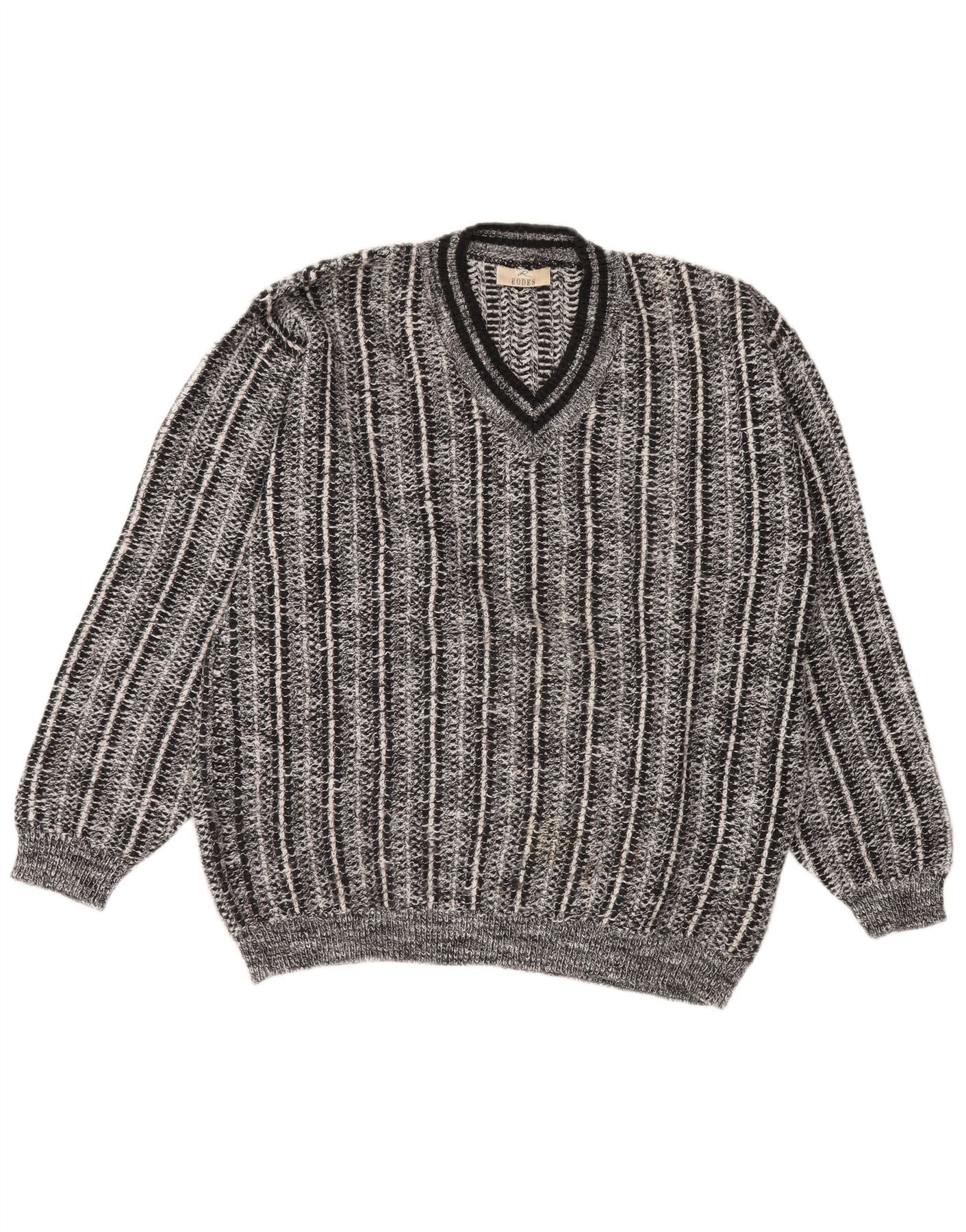 Мужской джемпер RODES с v-образным вырезом, большой серый акрил в полоску