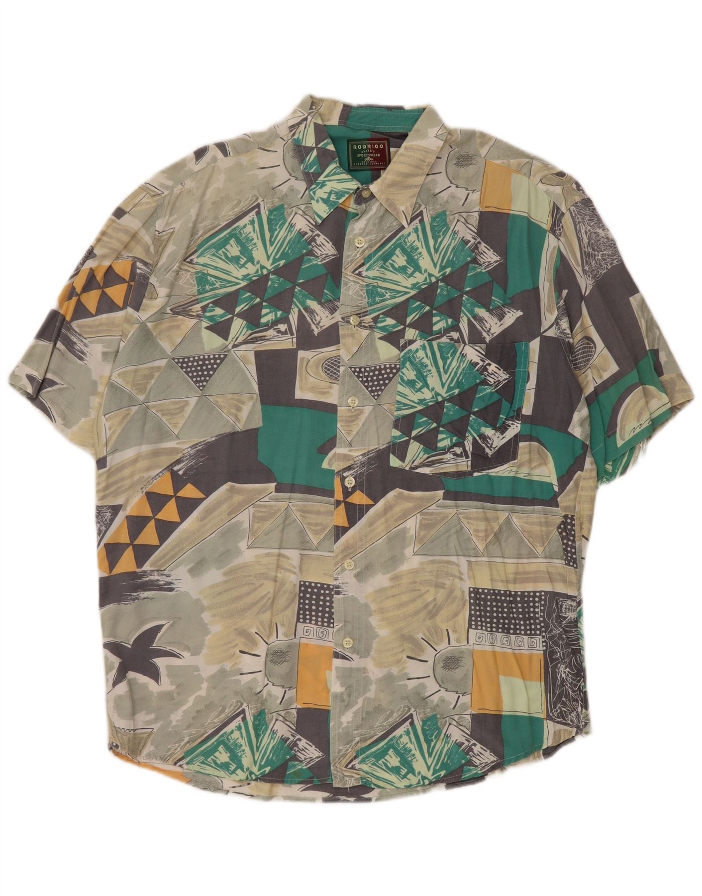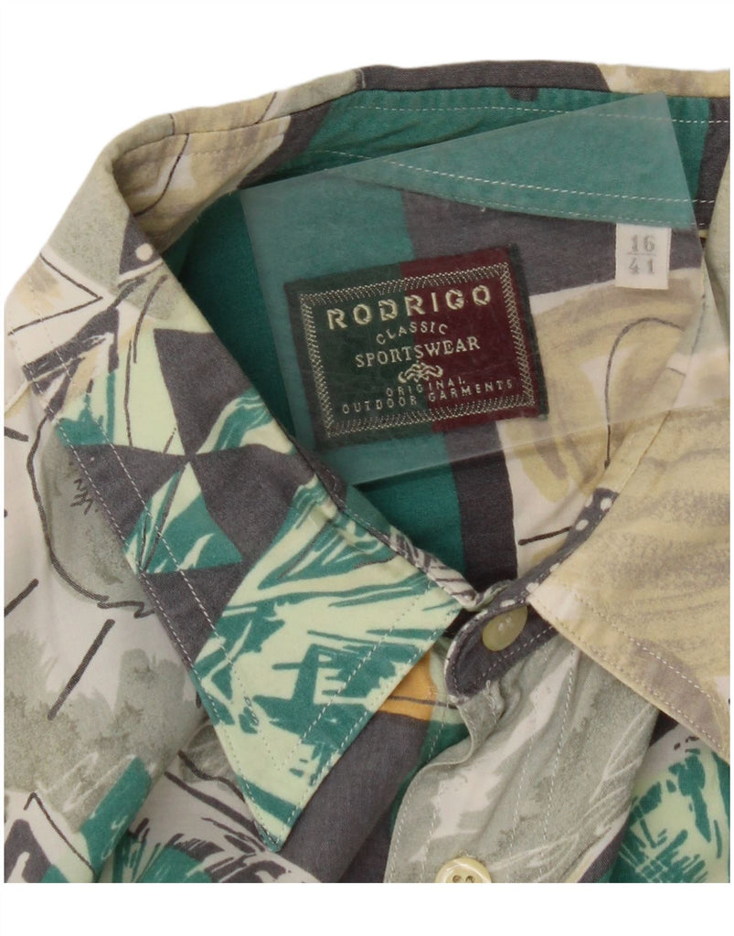 Мужская рубашка с коротким рукавом RODRIGO, размер 16, 41, большая, разноцветная, с геометрическим рисунком