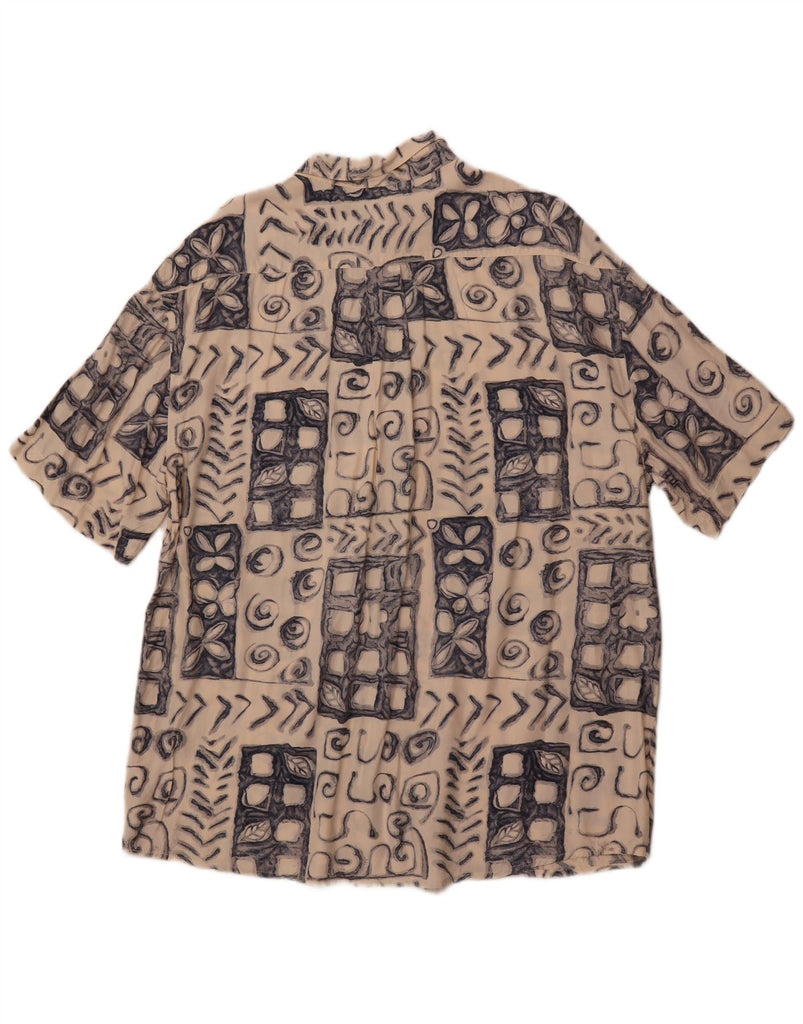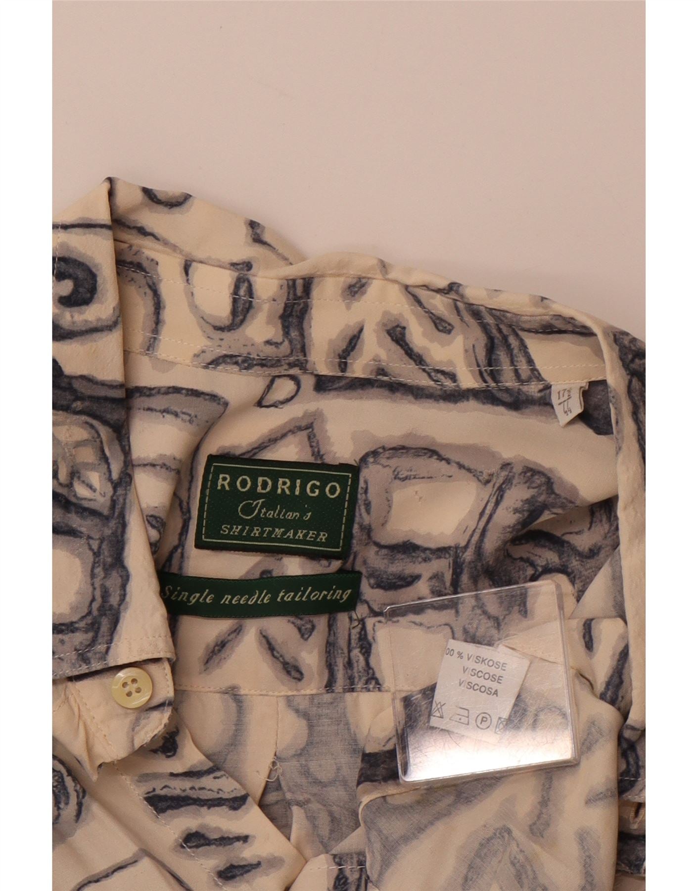 RODRIGO Мужская рубашка с коротким рукавом, размер 17 1/2 44 XL, белая вискоза с геометрическим рисунком