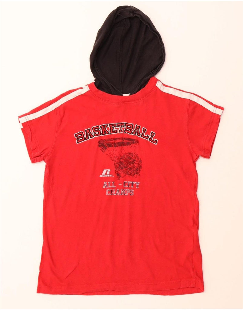 RUSSELL ATHLETIC Boys Graphic T-Shirt Top 7-8 Years Small Red Colourblock