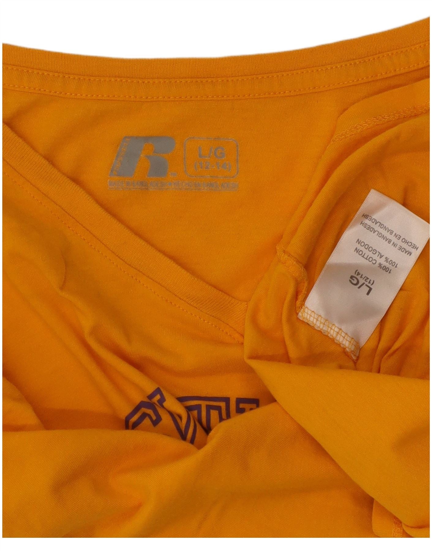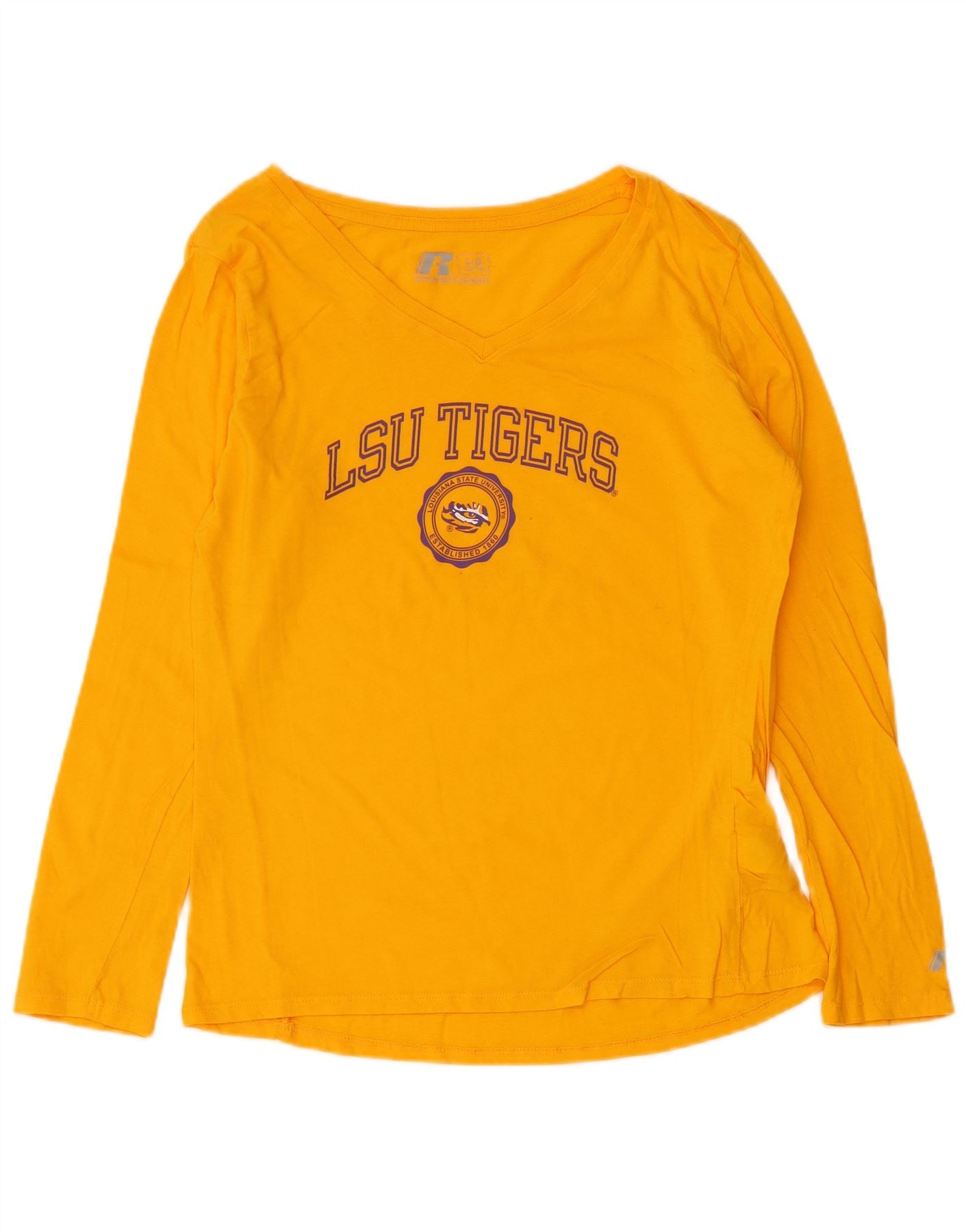 RUSSELL ATHLETIC Womens Graphic Top Long Sleeve US 12/14 Large Yellow