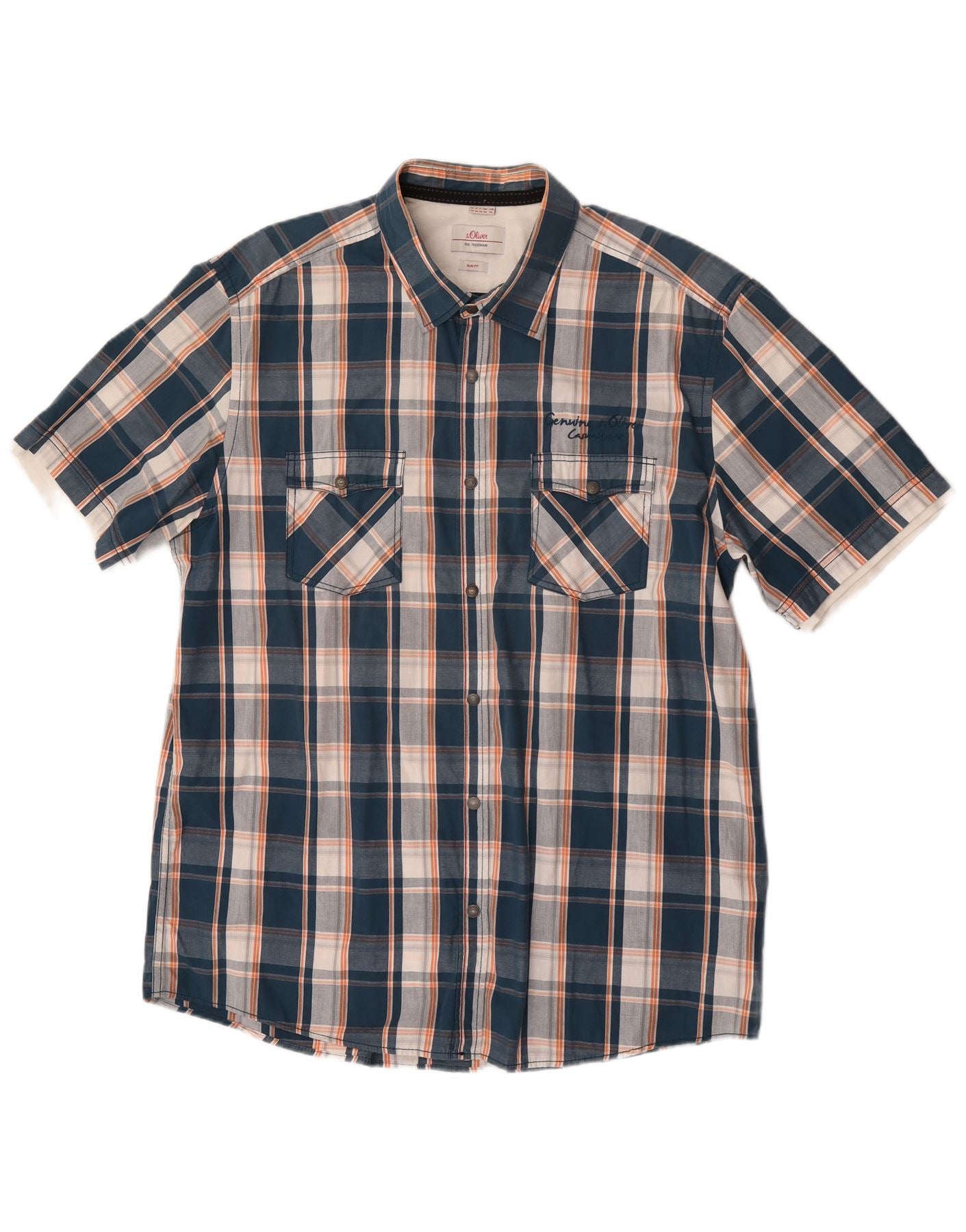 S.Oliver Мужская приталенная рубашка с коротким рукавом 2XL, синяя клетка, хлопок