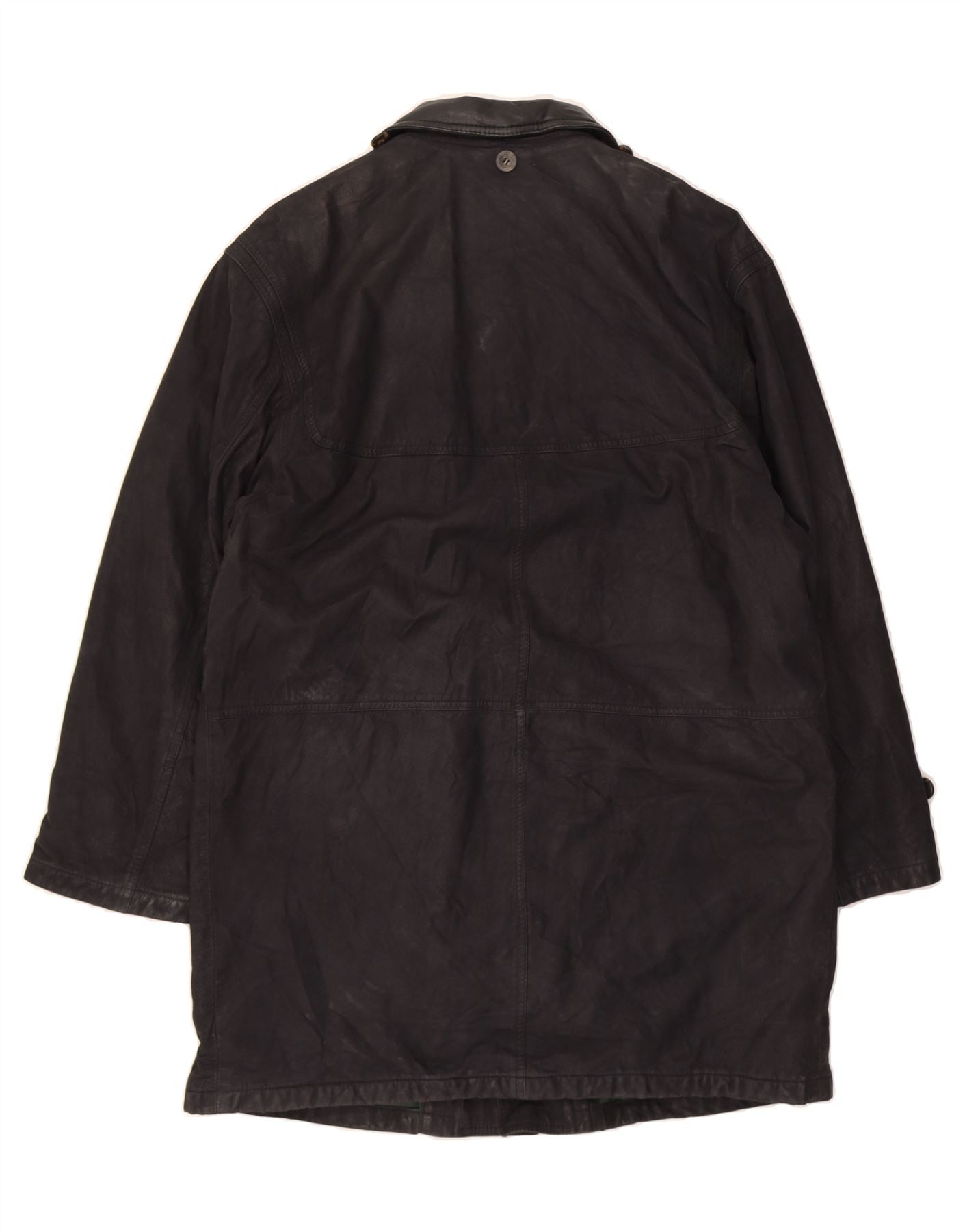 SALVATORE FERRAGAMO Mens Duffle Leather Coat IT 52 XL Black Leather