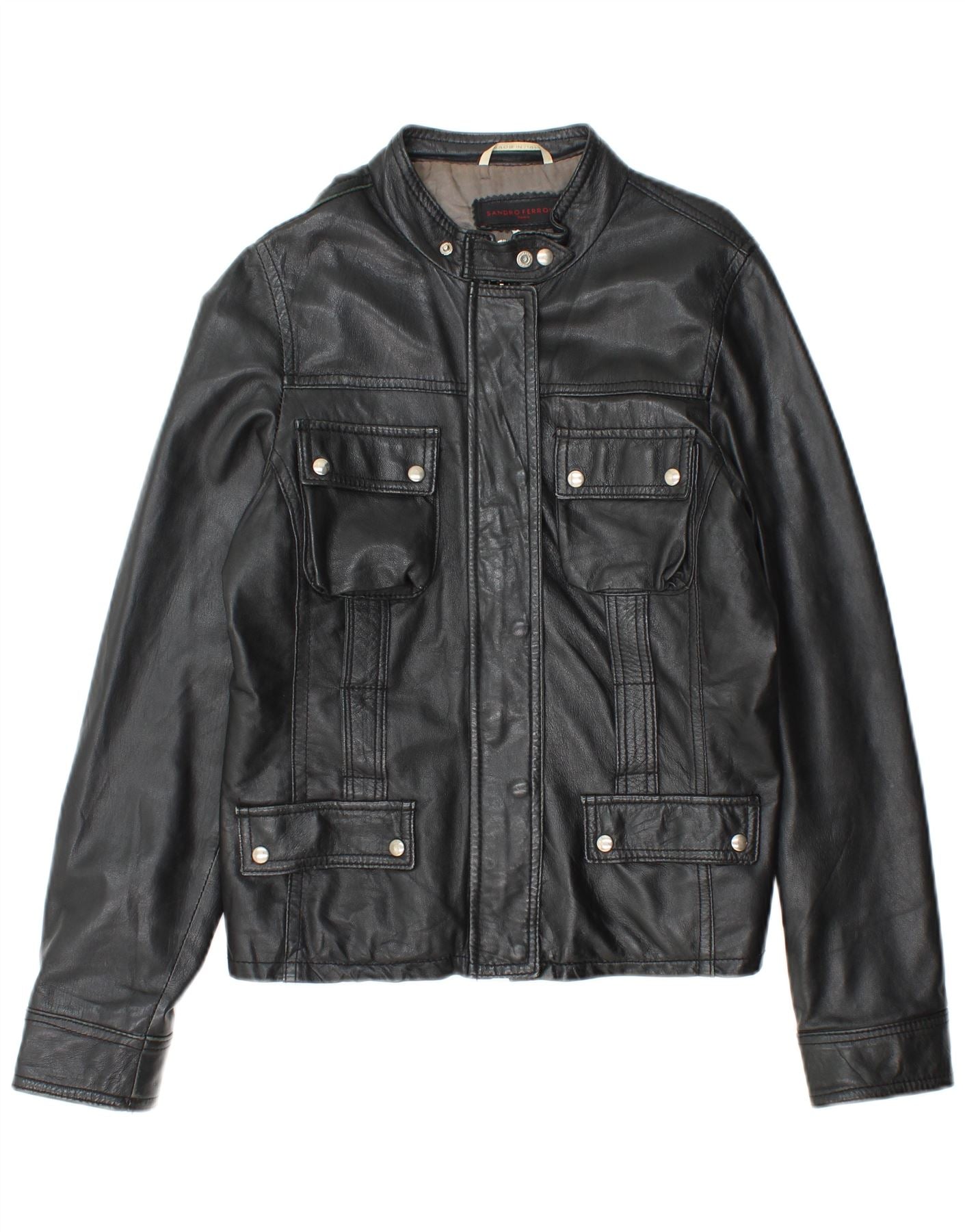 SANDRO FERRONE Женская кожаная куртка UK 14, большая черная кожа