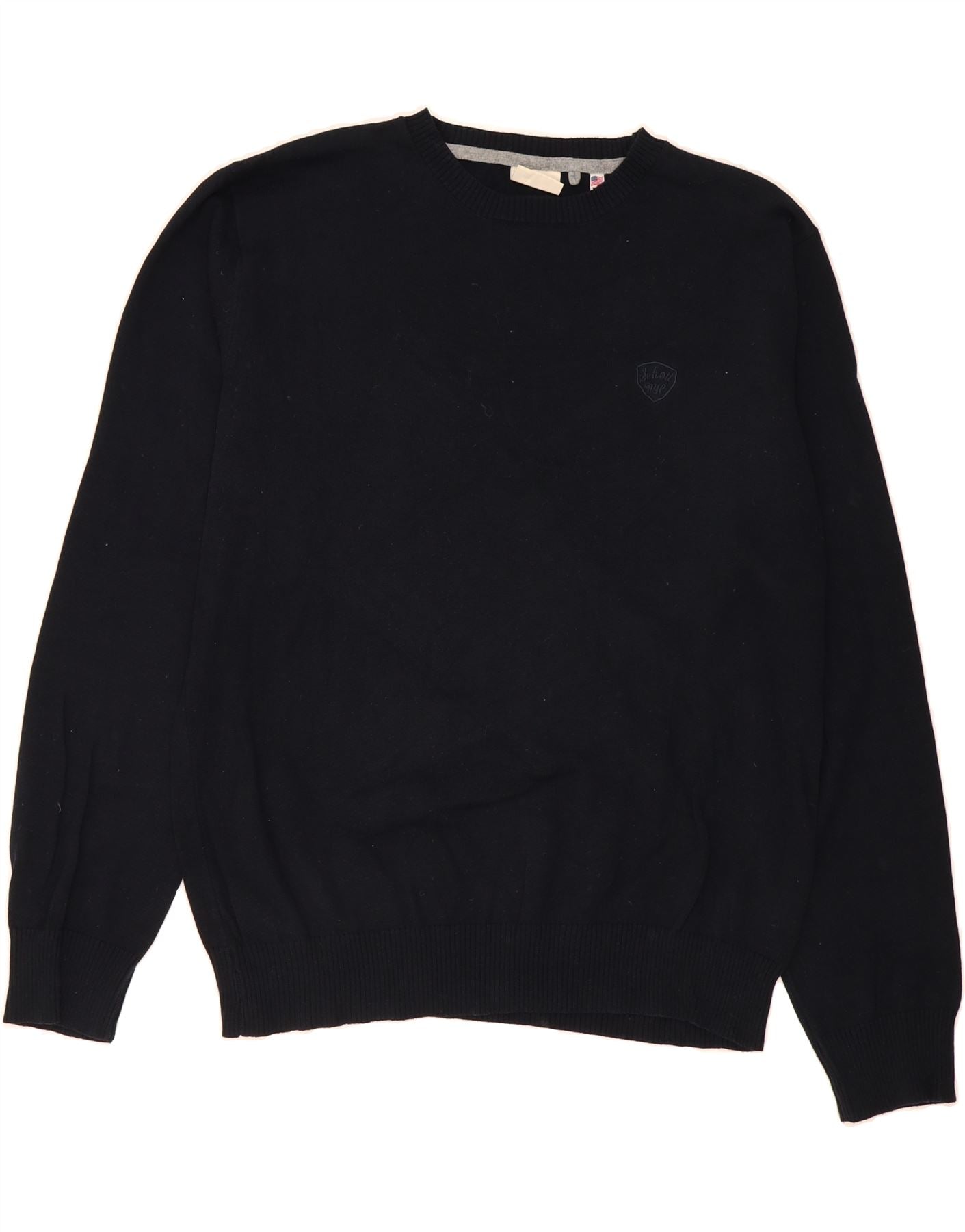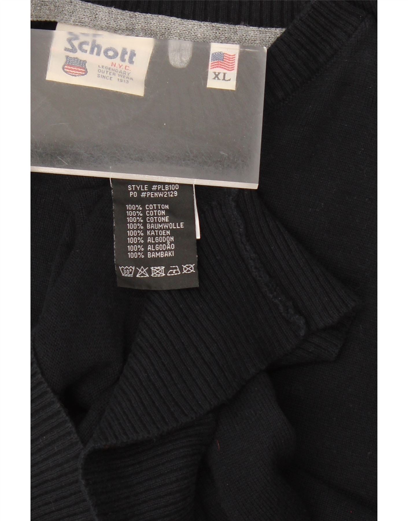 - AI Description: This pre-owned Schott sweatshirt jumper is a classic wardrobe staple. Crafted from 100% cotton knit fabric, it ensures all-day comfort. The regular fit and round neck provide a timeless silhouette, while the long sleeves make it ideal for cooler days. Featuring a pullover closure and subtle logo accent, this black sweatshirt in size XL is a versatile addition to any wardrobe. Easy care with 30-degree washing instructions.