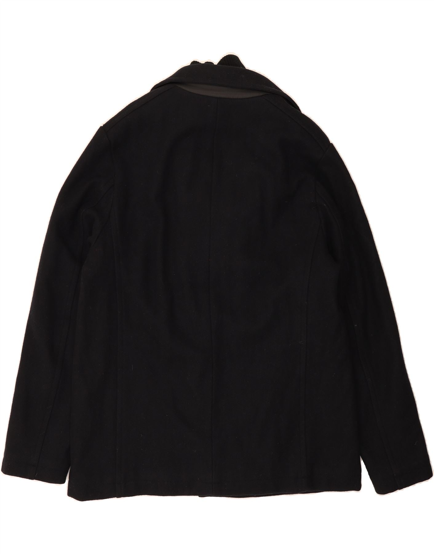 - AI Description: A classic men's pea coat from Schott in black tweed. Crafted from a durable wool blend (80% wool, 20% nylon/polyester) and fully lined for warmth. This double-breasted coat features a regular fit, long sleeves, and a collared neckline. It has a button closure and practical pockets. In pre-owned excellent condition, reflecting the quality of this New York City heritage brand. A timeless piece with a regular fit, ideal for any wardrobe.