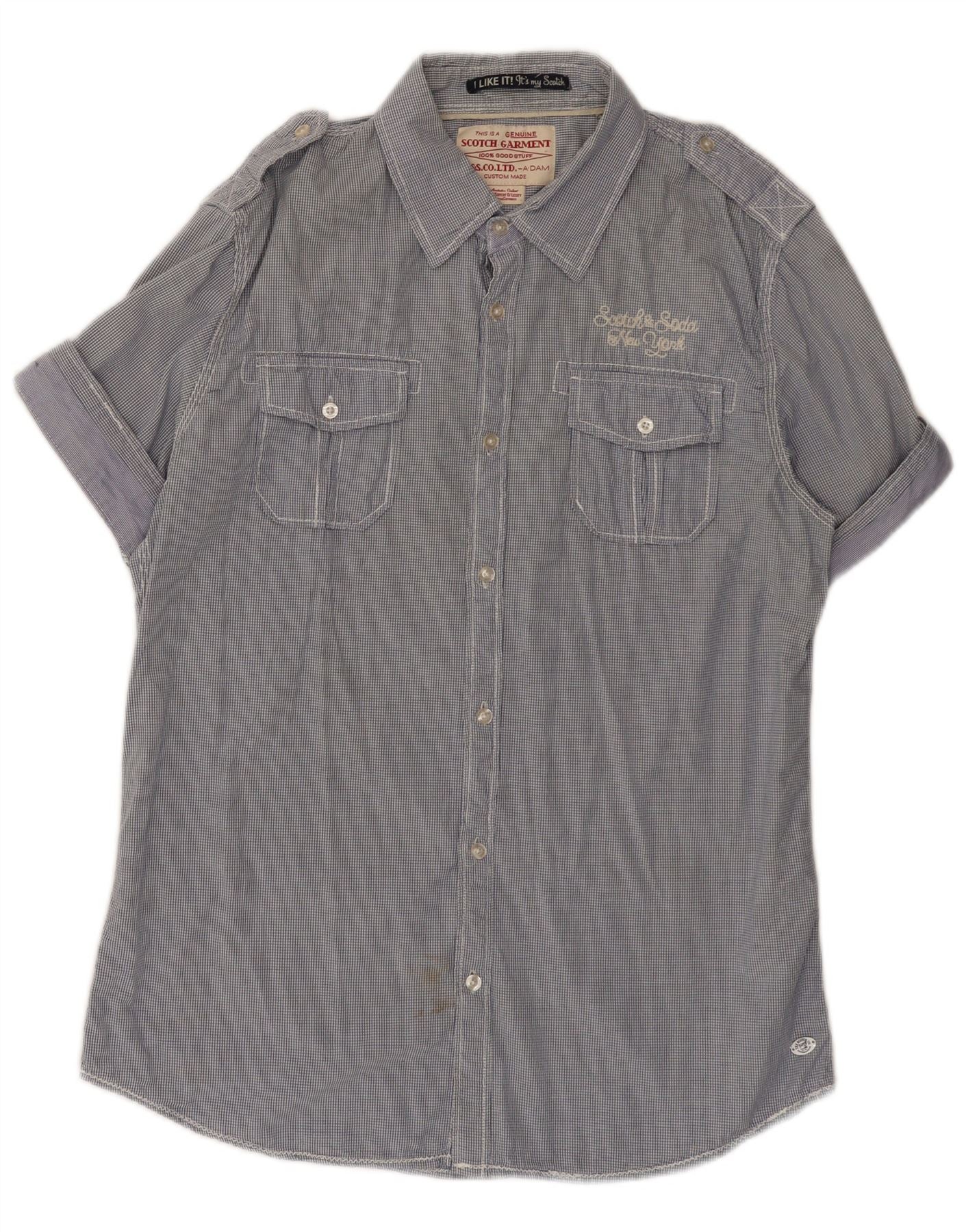 Мужская рубашка в стиле милитари с коротким рукавом SCOTCH & SODA, большая синяя хлопковая клетка в мелкую клетку