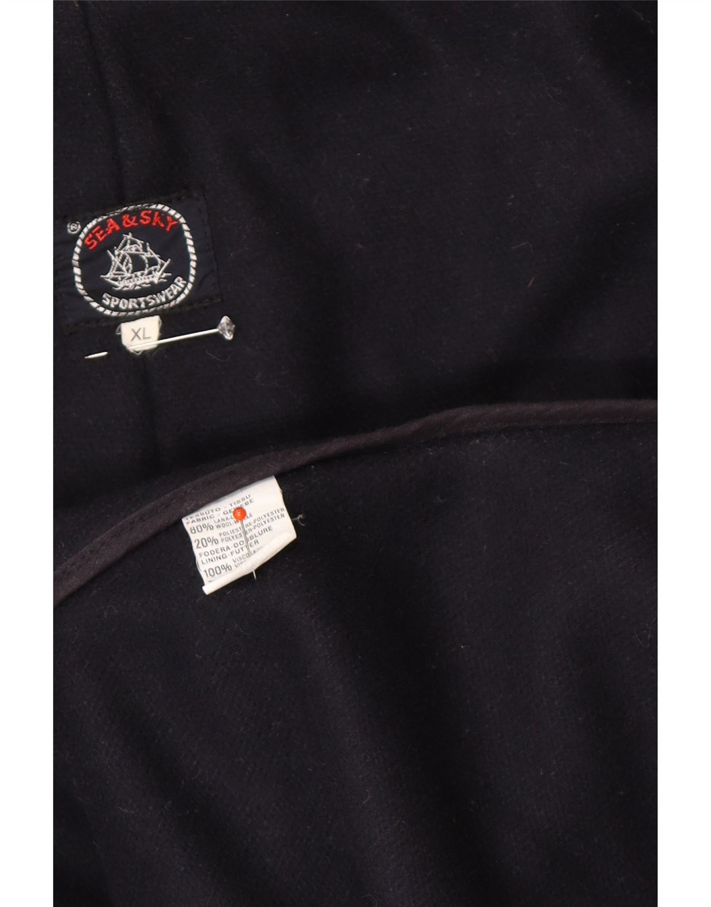 Мужской дафлкот с капюшоном SEA & SKY UK 42 XL, темно-синий, шерсть