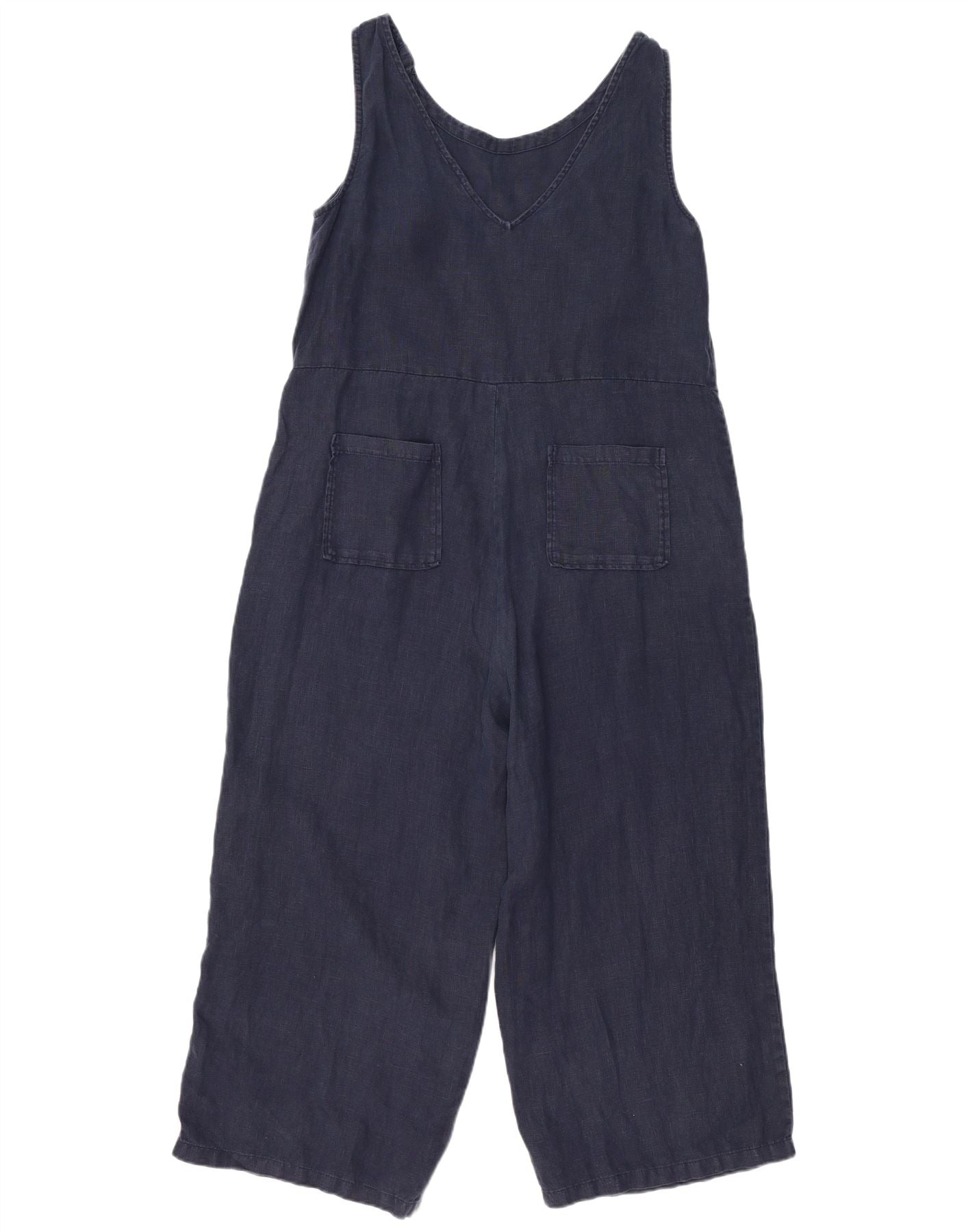 - AI Description: This Seasalt Cornwall womens jumpsuit is crafted from a navy blue woven fabric, offering a relaxed dungaree style. It features a V-neckline and a sleeveless design for a comfortable fit. Button closures add a practical accent. Functional pockets enhance its utility. The relaxed fit ensures ease of movement and a comfortable silhouette.
