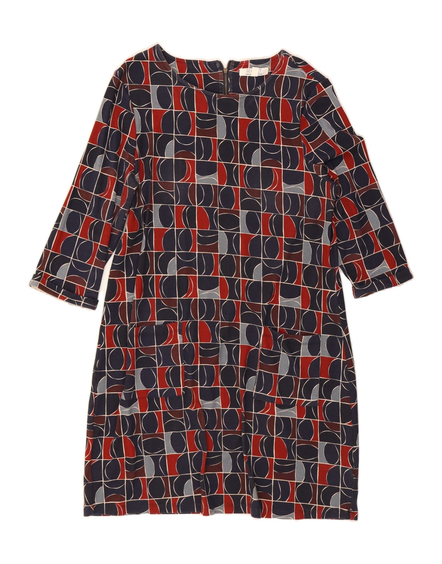 SEASALT Womens 3/4 Sleeve Sheath Dress UK 16 Large Navy Blue Geometric