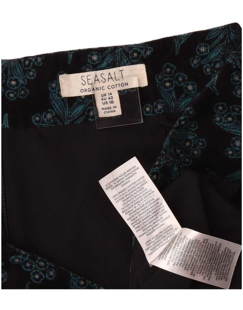 SEASALT Womens Corduroy Skirt UK 14 Large W32 Black Floral Cotton