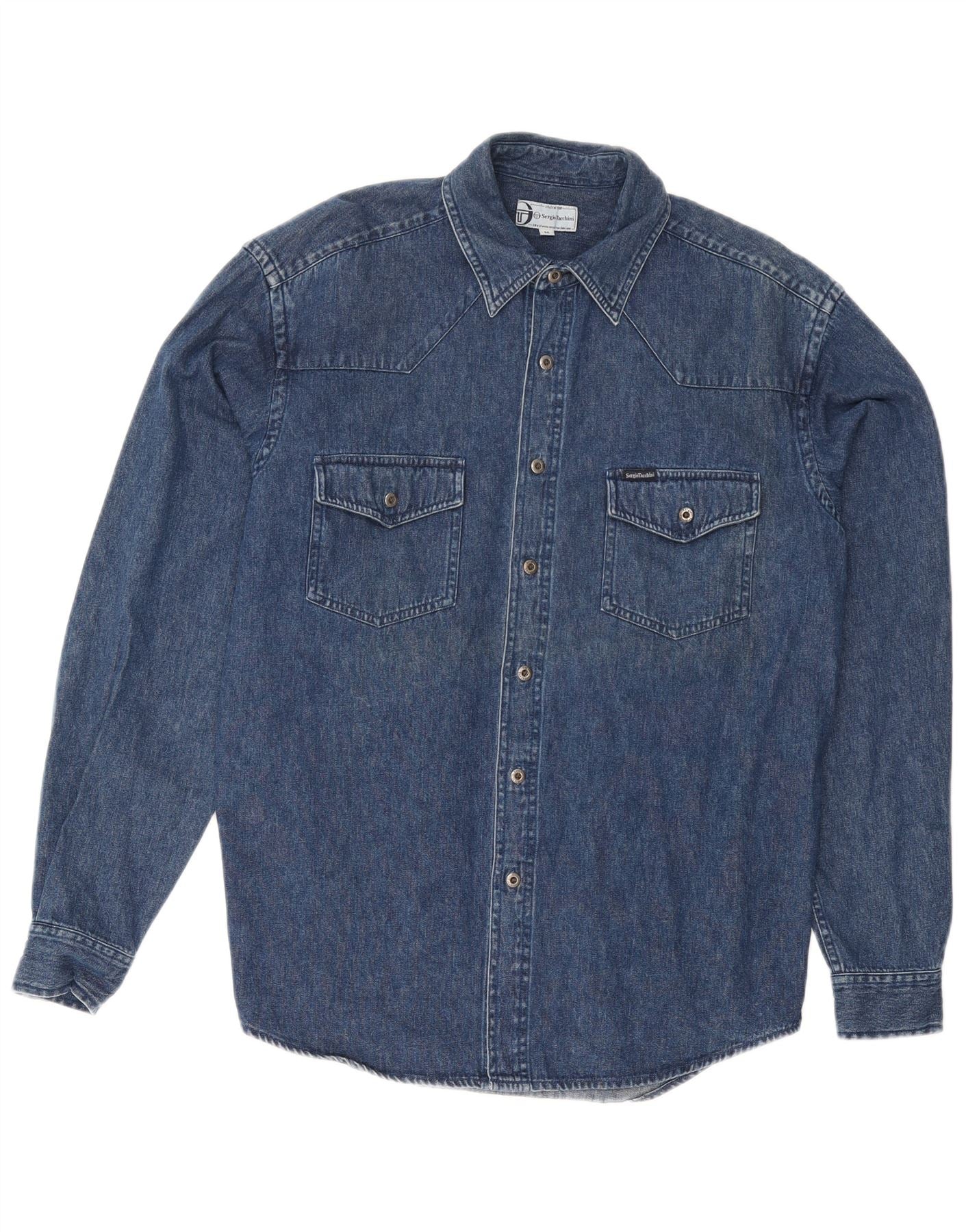 Мужская джинсовая рубашка Sergio Tacchini среднего размера, темно-синяя, хлопок