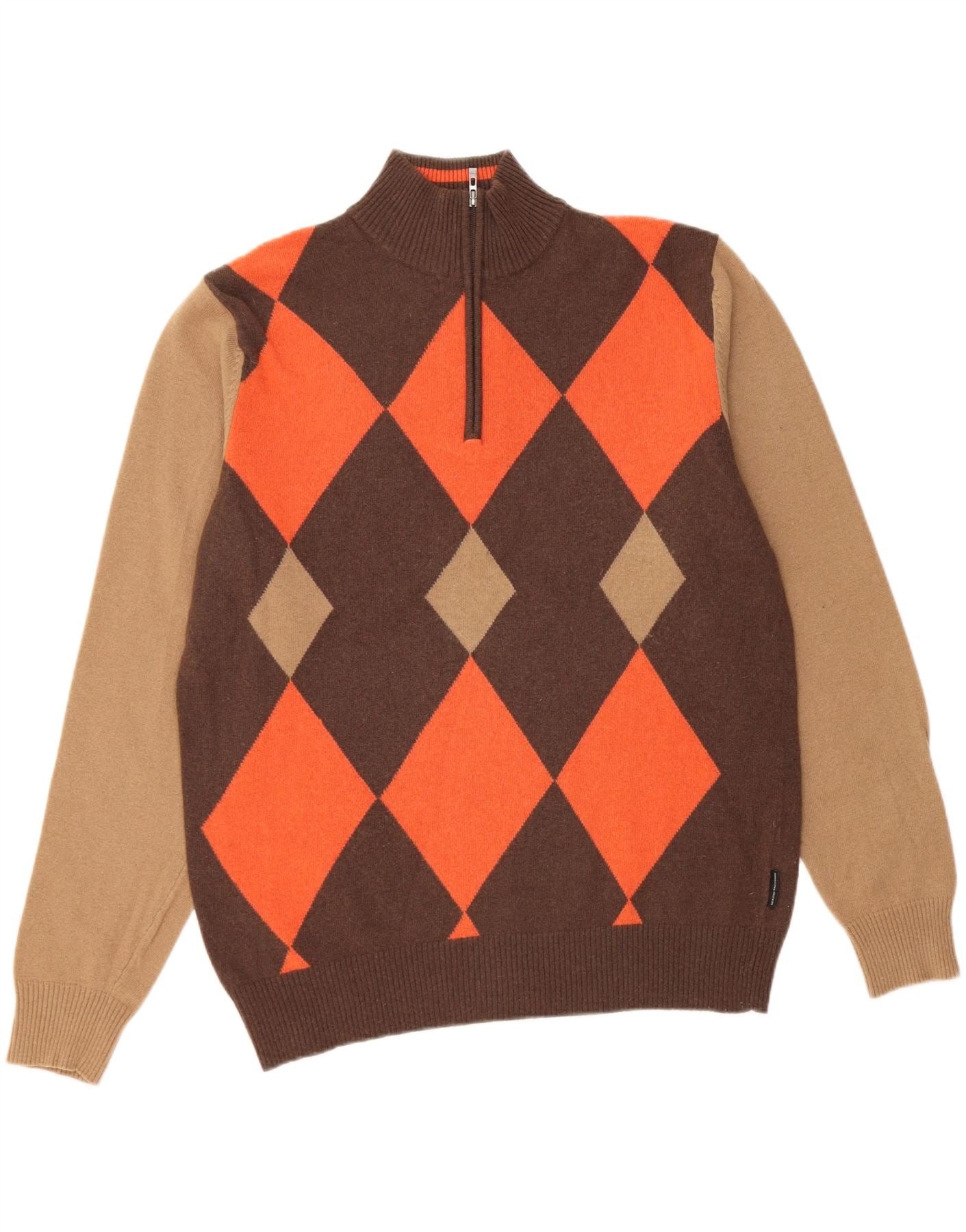 SERGIO TACCHINI Мужской джемпер с воротником на молнии XL, коричневый Argyle/Diamond Wool