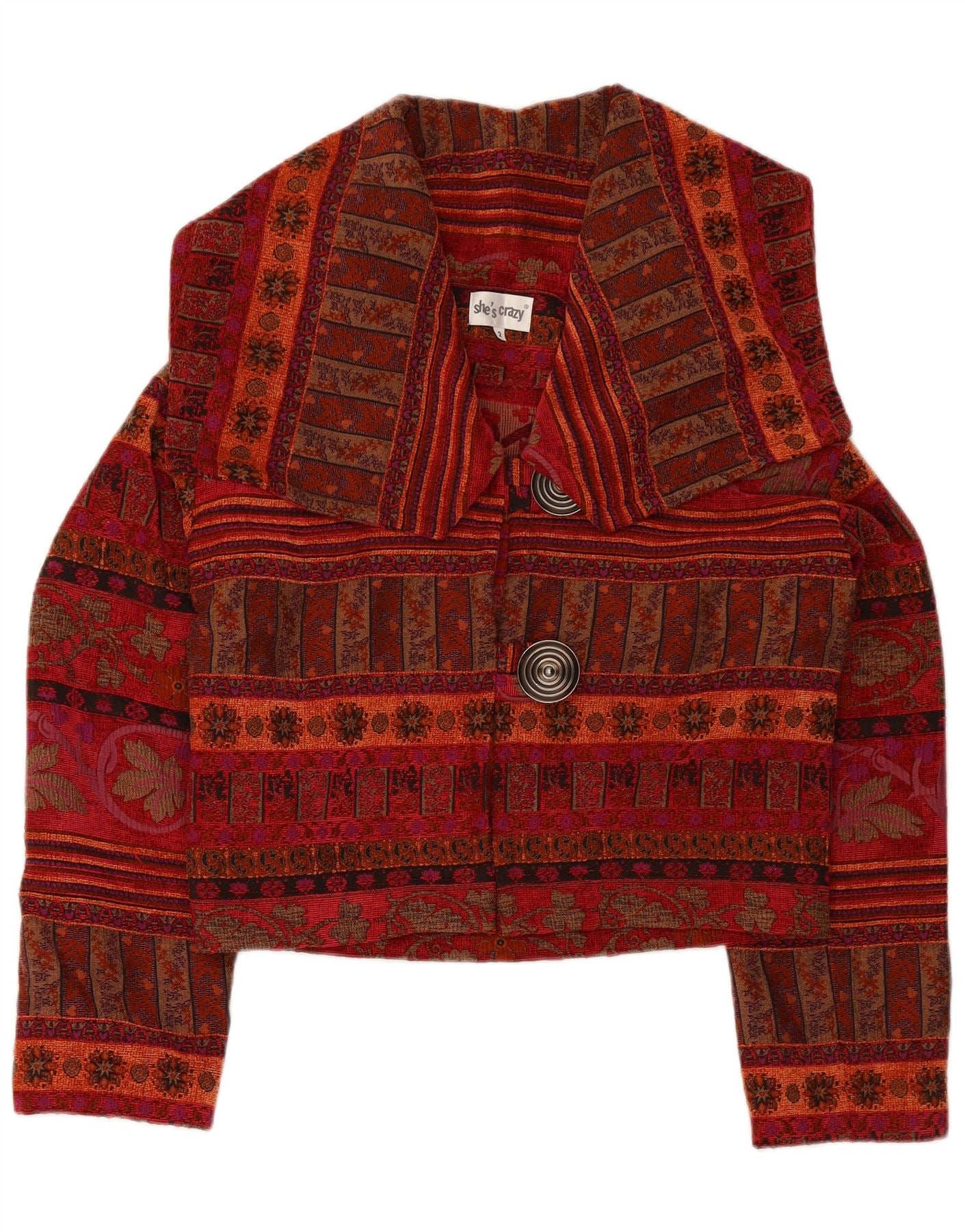 SHE'S CRAZY Женский укороченный пиджак большого размера США 2 XS Бордовый с цветочным принтом