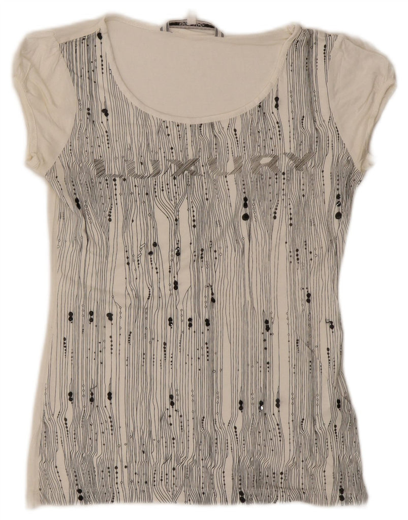 SILVIAN HEACH Женская футболка с рисунком Top UK 10 Small White Geometric