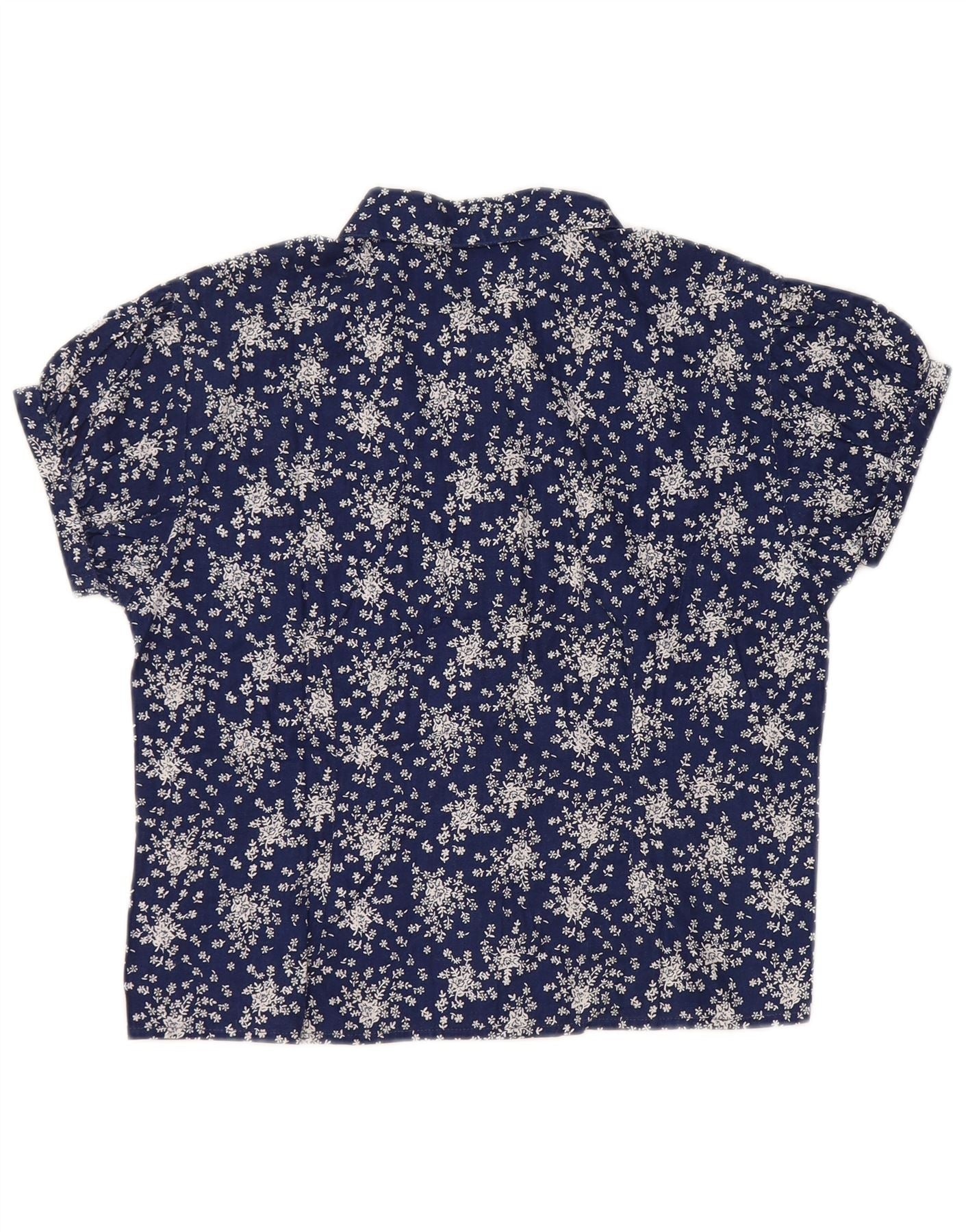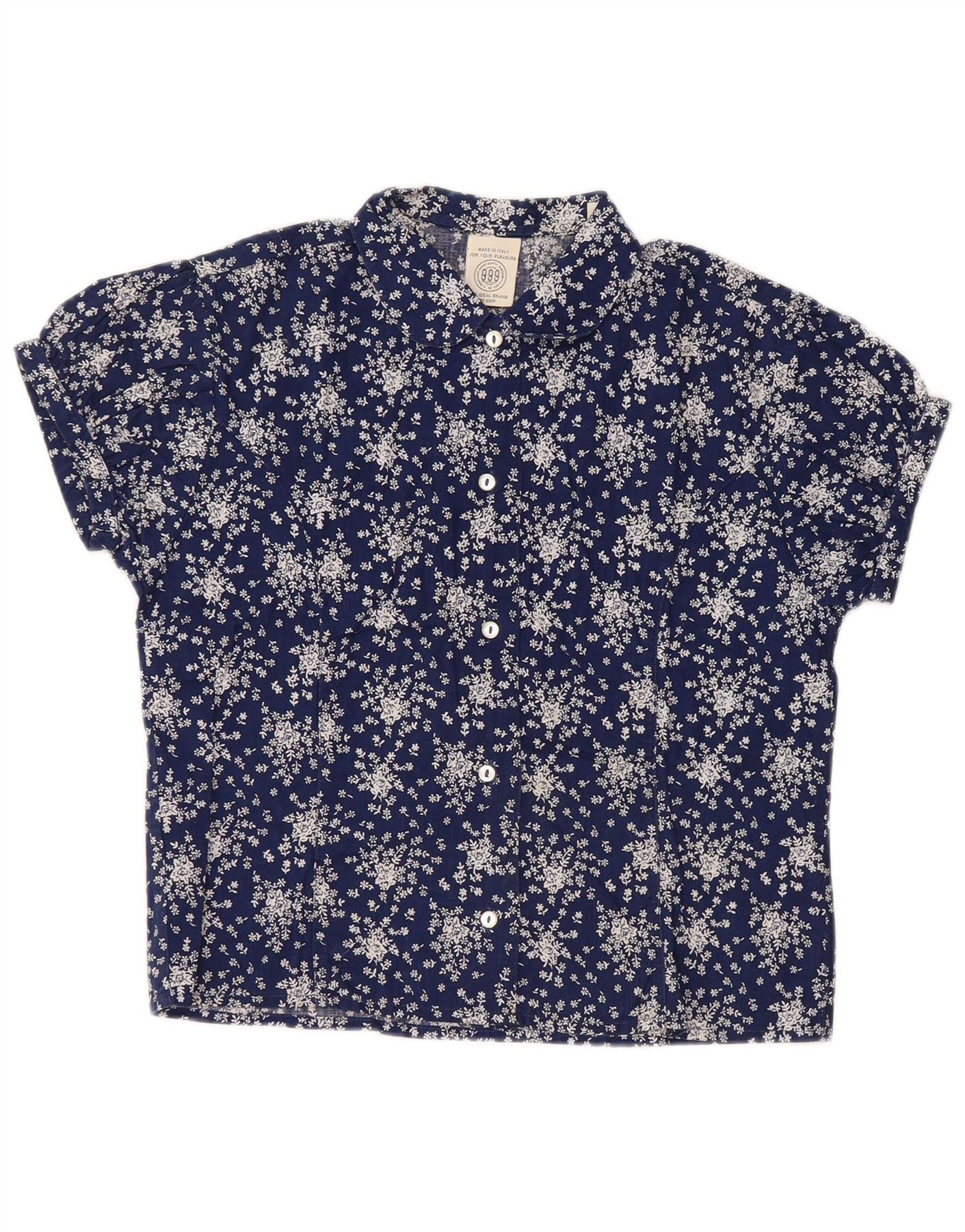 Женская укороченная блузка-рубашка с коротким рукавом SISLEY UK 14, большая темно-синяя с цветочным принтом