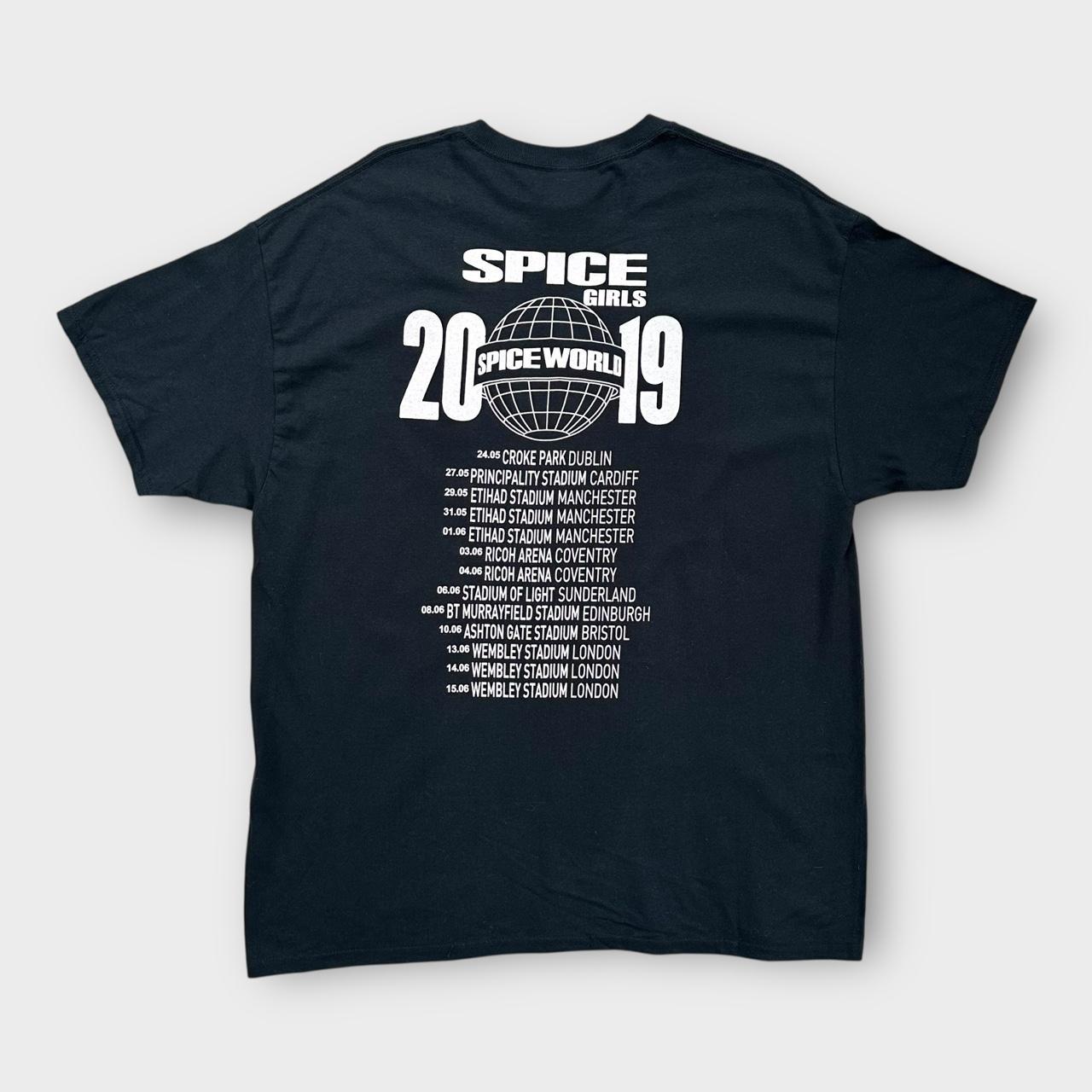 Черная музыкальная футболка Spice Girls «spic world» для тура по Великобритании в 2019 году с графическим принтом на груди и спине и биркой Gildan