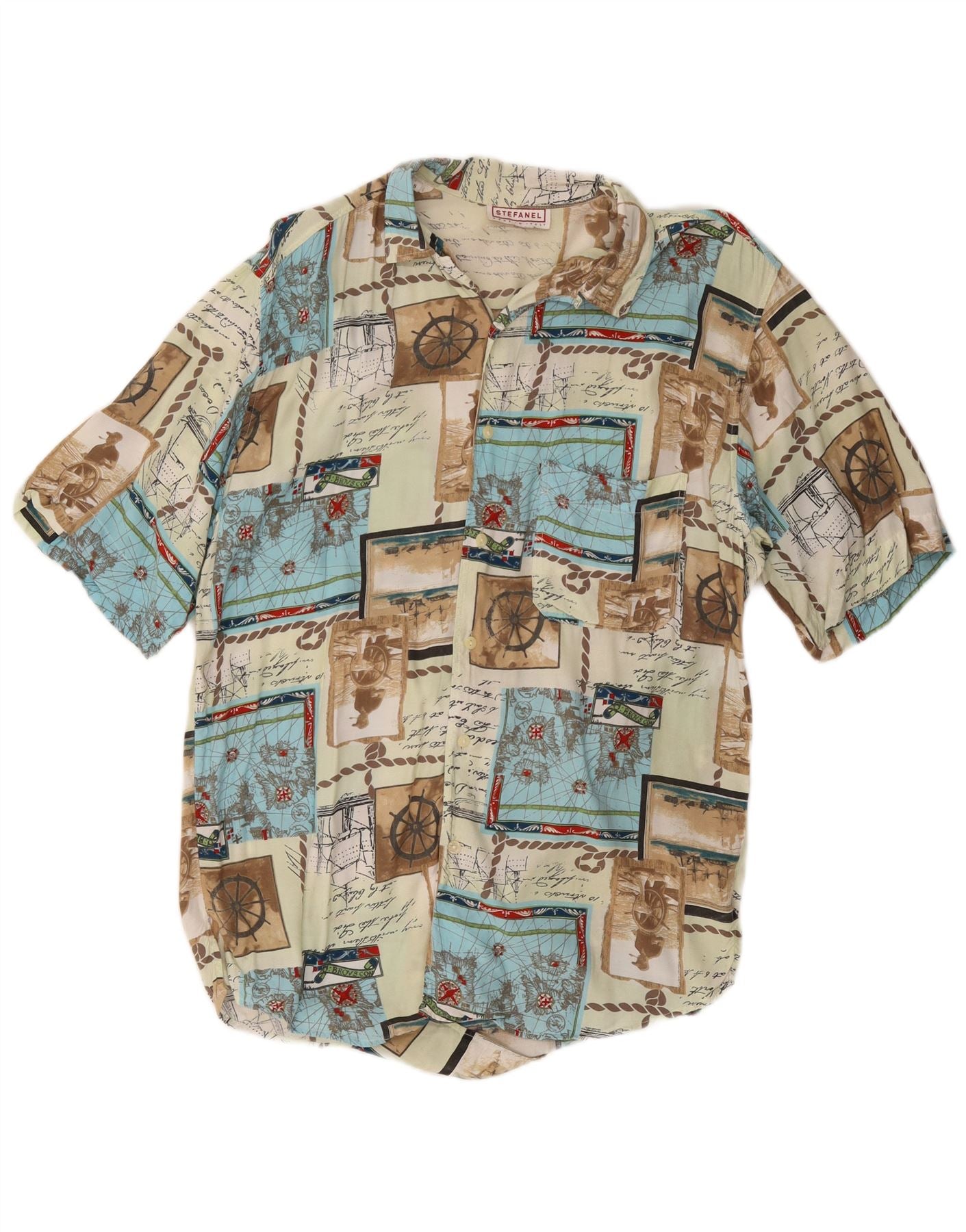 STEFANEL Мужская рубашка с коротким рукавом и рисунком, маленькая разноцветная пэчворк