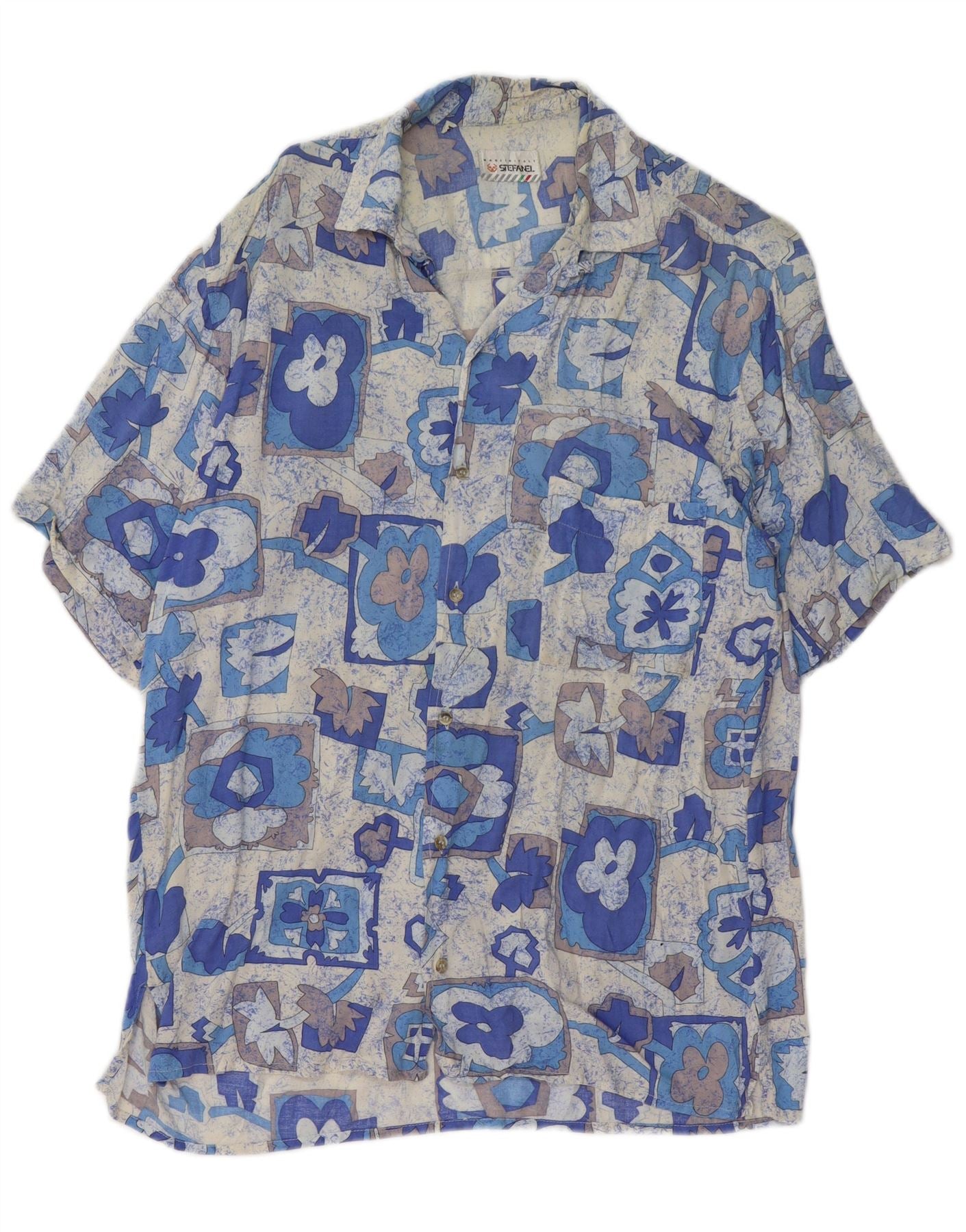 STEFANEL Мужская Рубашка С Коротким Рукавом Средне-Синяя Лоскутная Вискоза