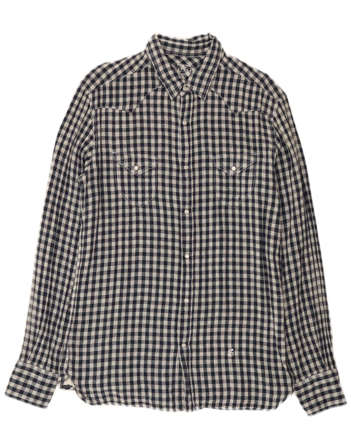 Stefanel Мужская рубашка в стиле вестерн, темно-синяя, хлопковая в мелкую клетку