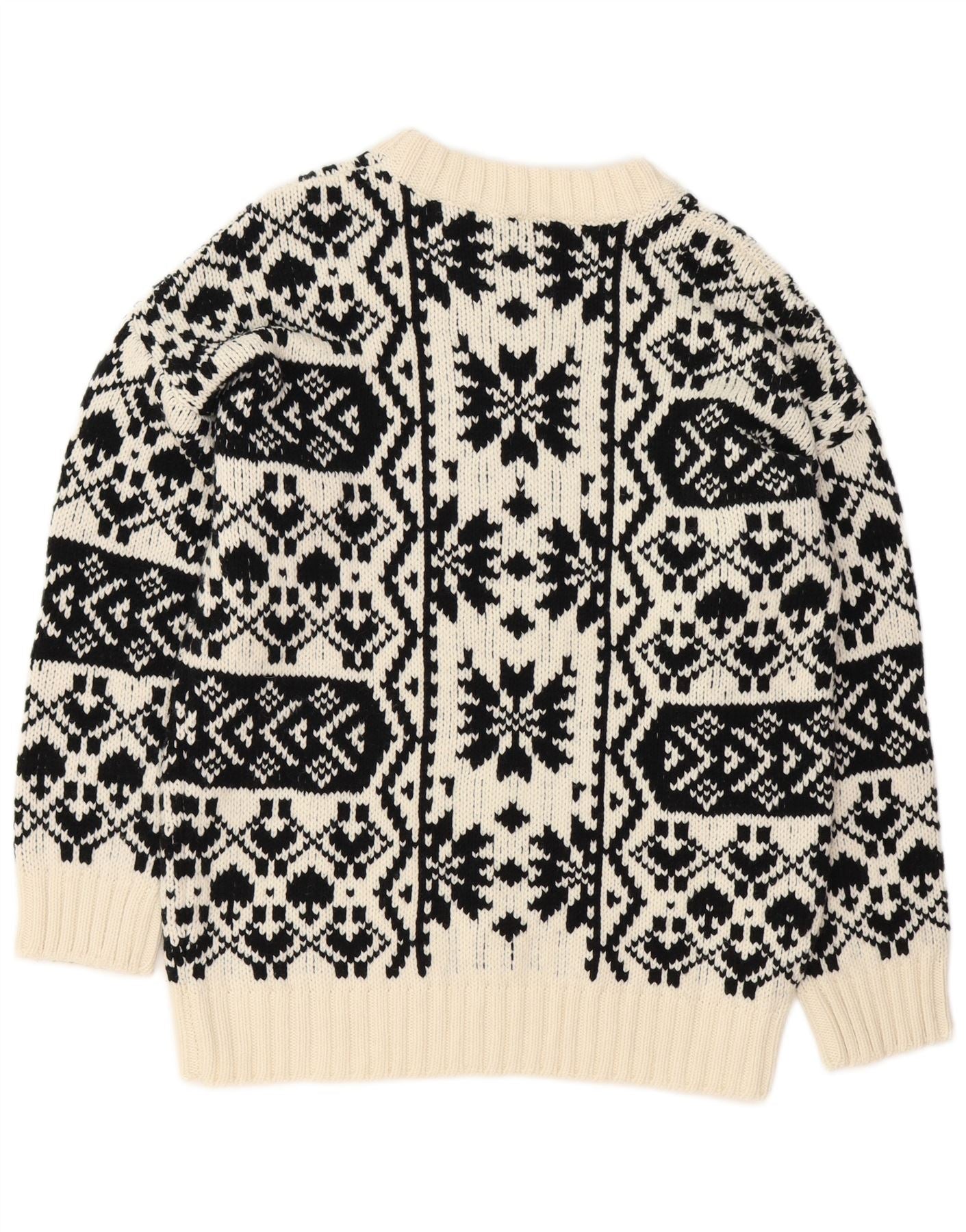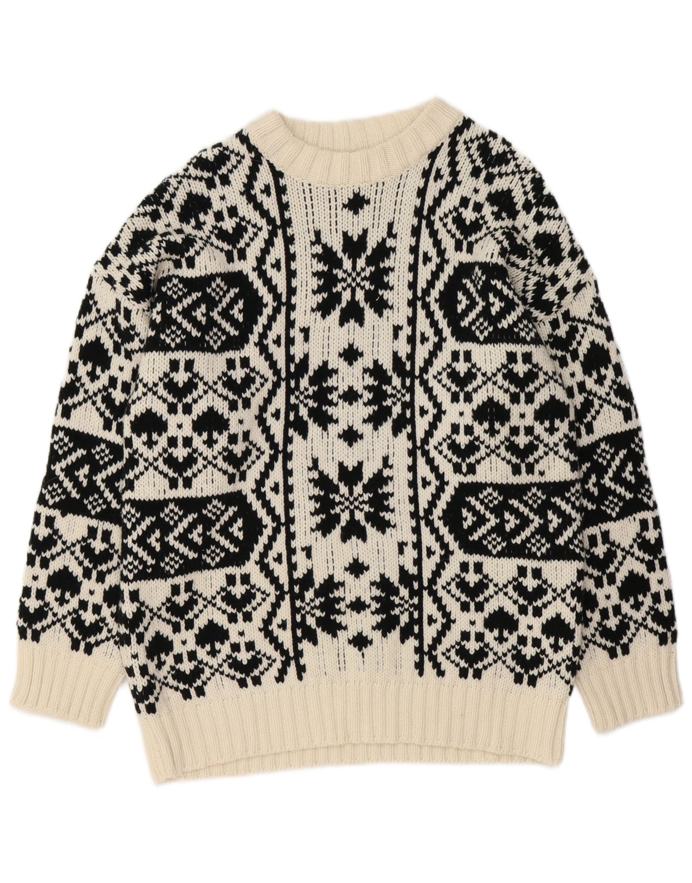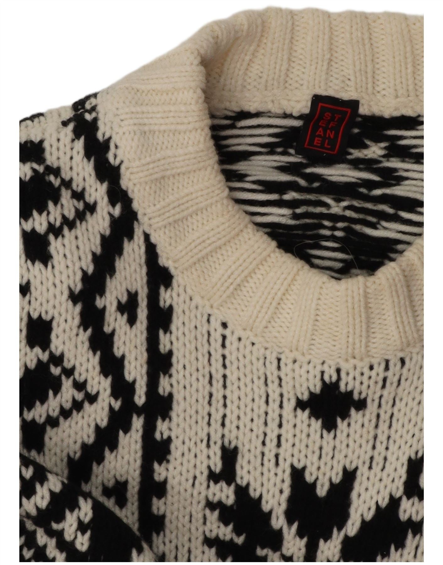 STEFANEL Womens Boat Neck Jumper Sweater UK 14 Large Off White Fair Isle