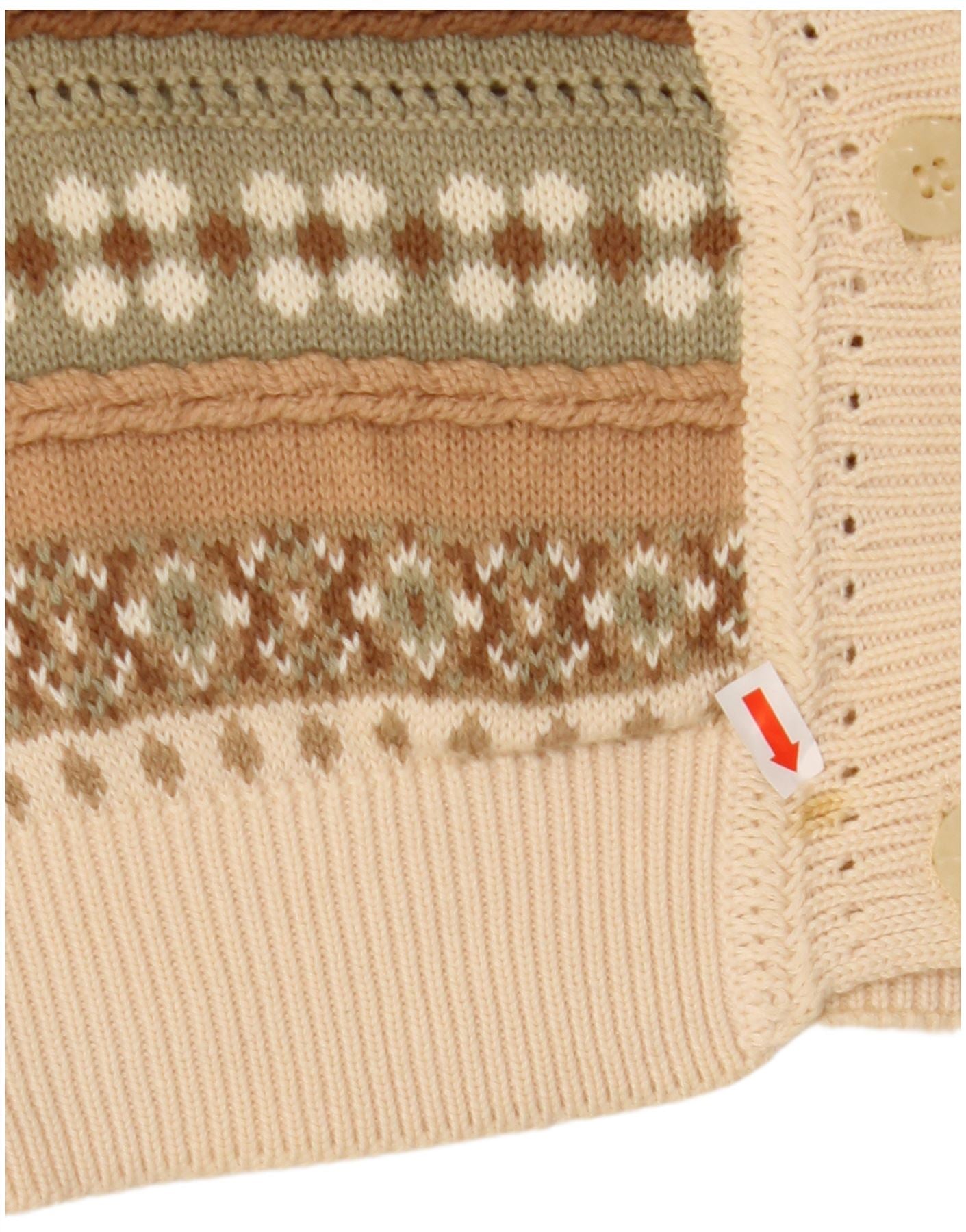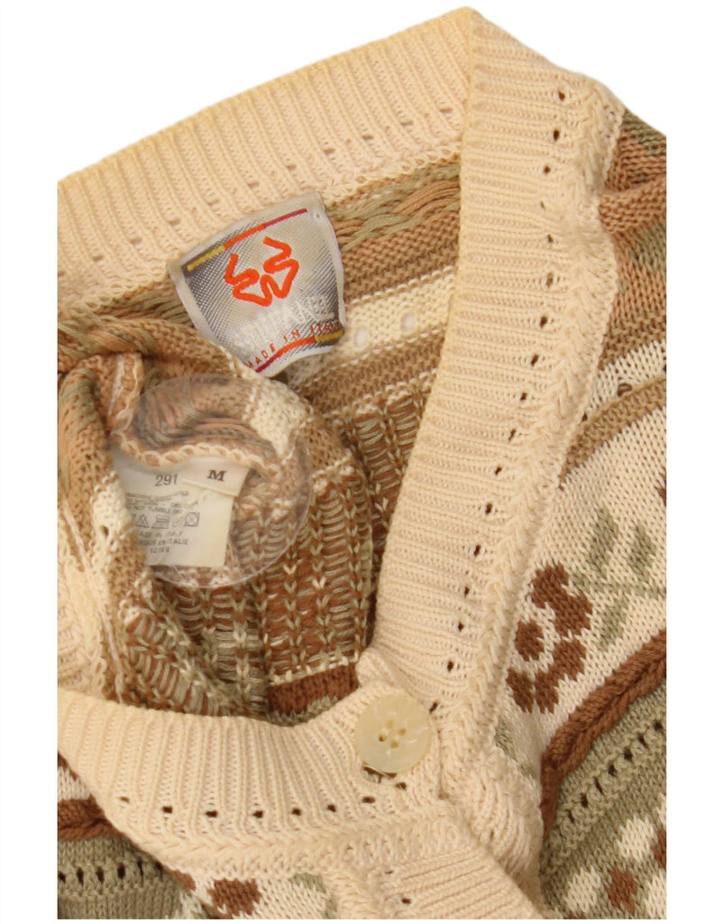 STEFANEL Womens Short Sleeve Cardigan Sweater UK 14 Medium Beige Fair Isle