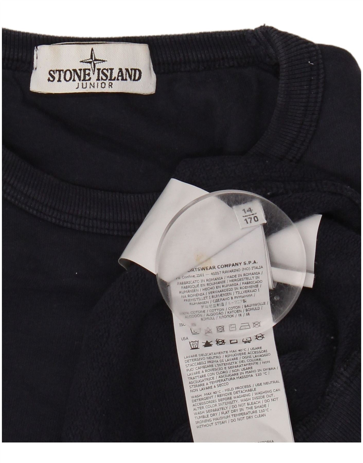 STONE ISLAND Boys Sweatshirt Jumper 13-14 Years Navy Blue Cotton