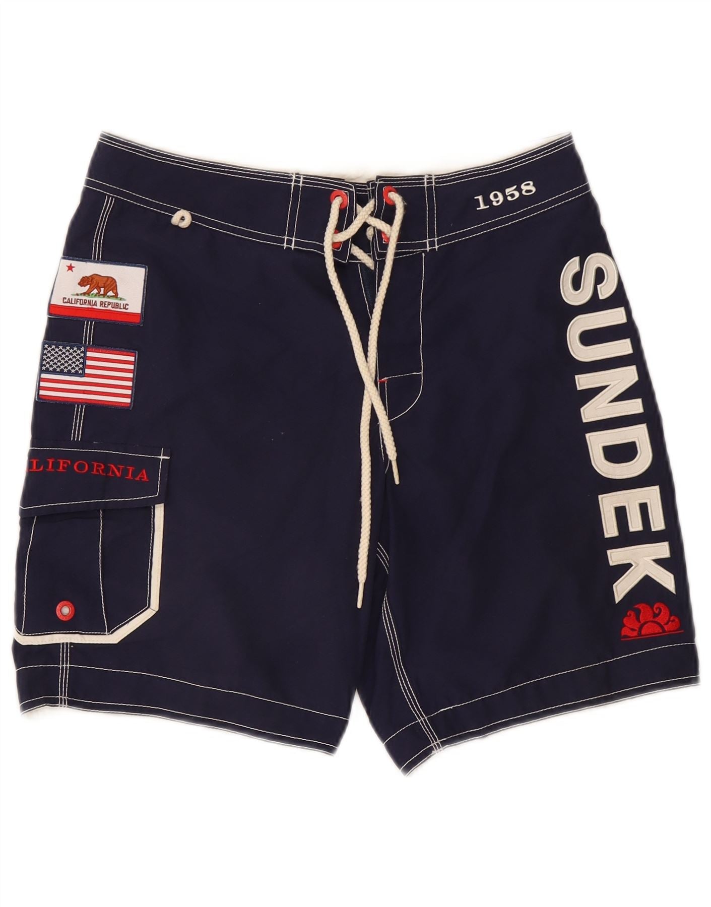 SUNDEK Мужские шорты для плавания с рисунком, маленькие, темно-синие, полиэстер