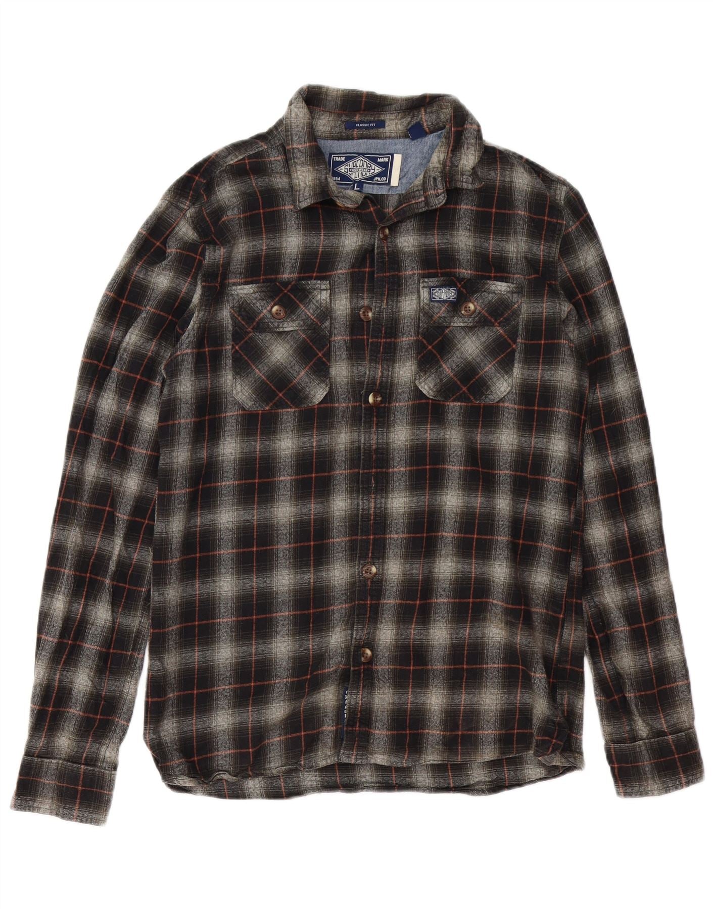 SUPERDRY Мужская фланелевая рубашка классического кроя, большая черная клетка, хлопок