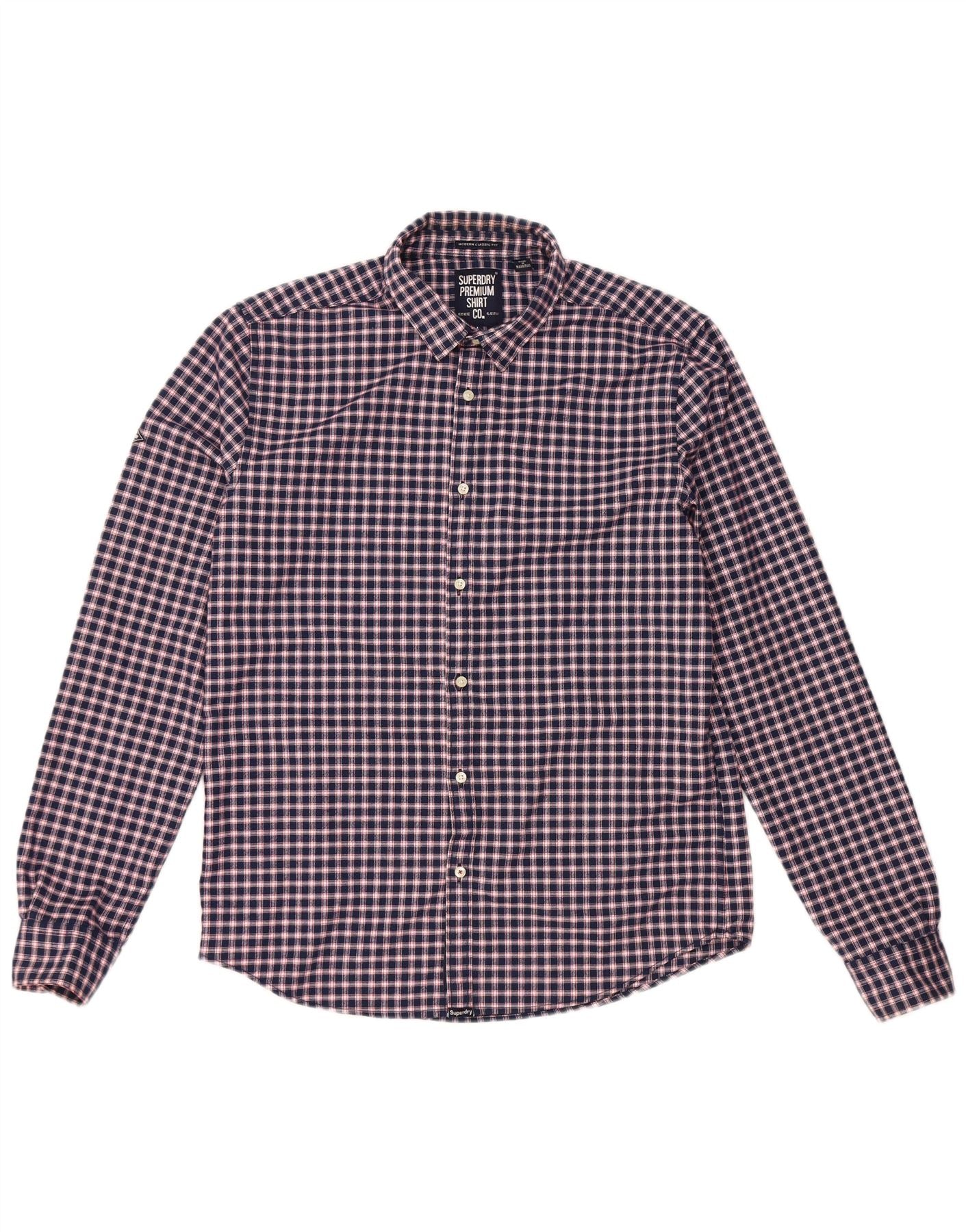 Superdry Мужская фланелевая рубашка классического кроя, большая темно-синяя клетка из полиэстера