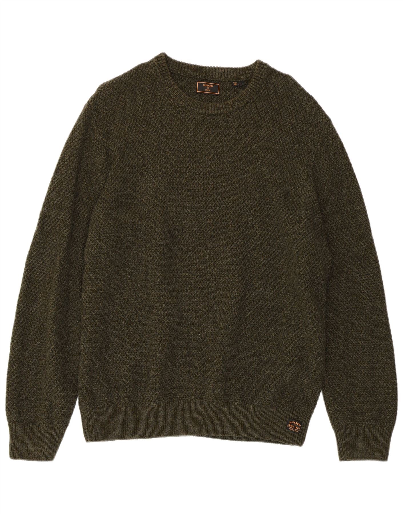 SUPERDRY Мужской свитер с круглым вырезом 2XL, цвет хаки, хлопок