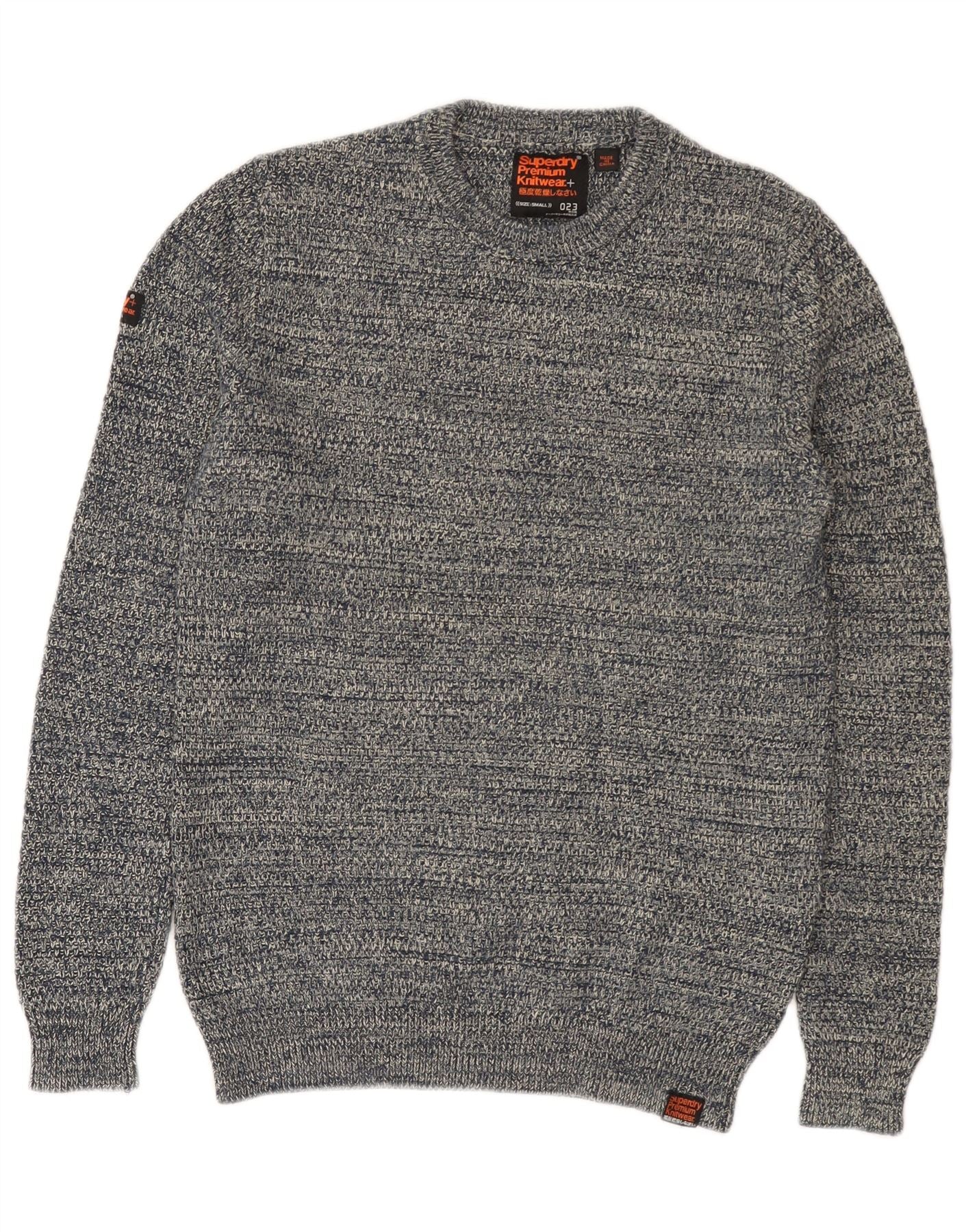 SUPERDRY Мужской джемпер с круглым вырезом, маленький хлопковый свитер темно-синего цвета с крапинками