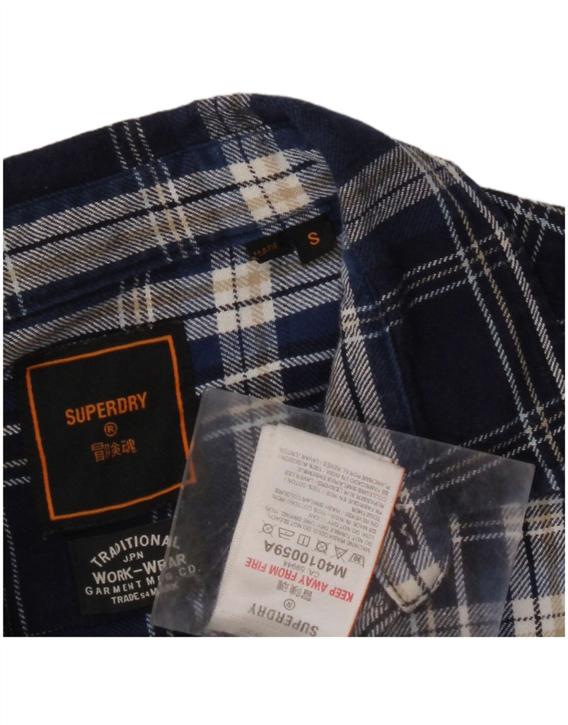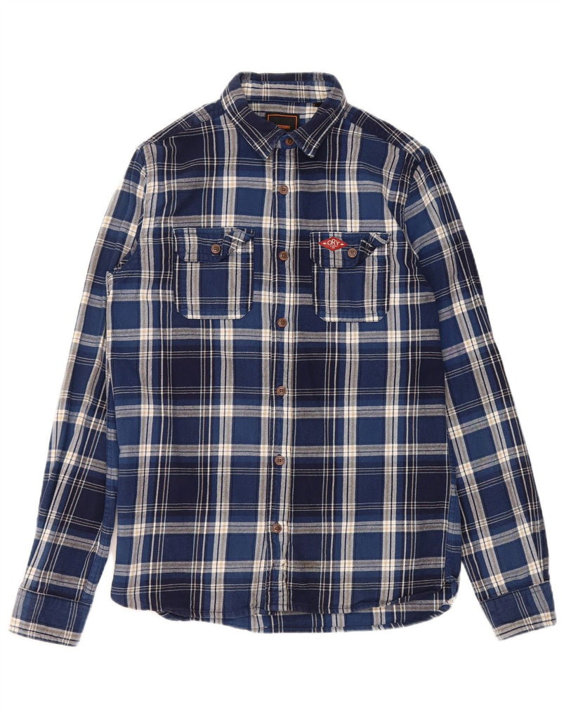 SUPERDRY Мужская фланелевая рубашка, маленькая синяя клетка, хлопок