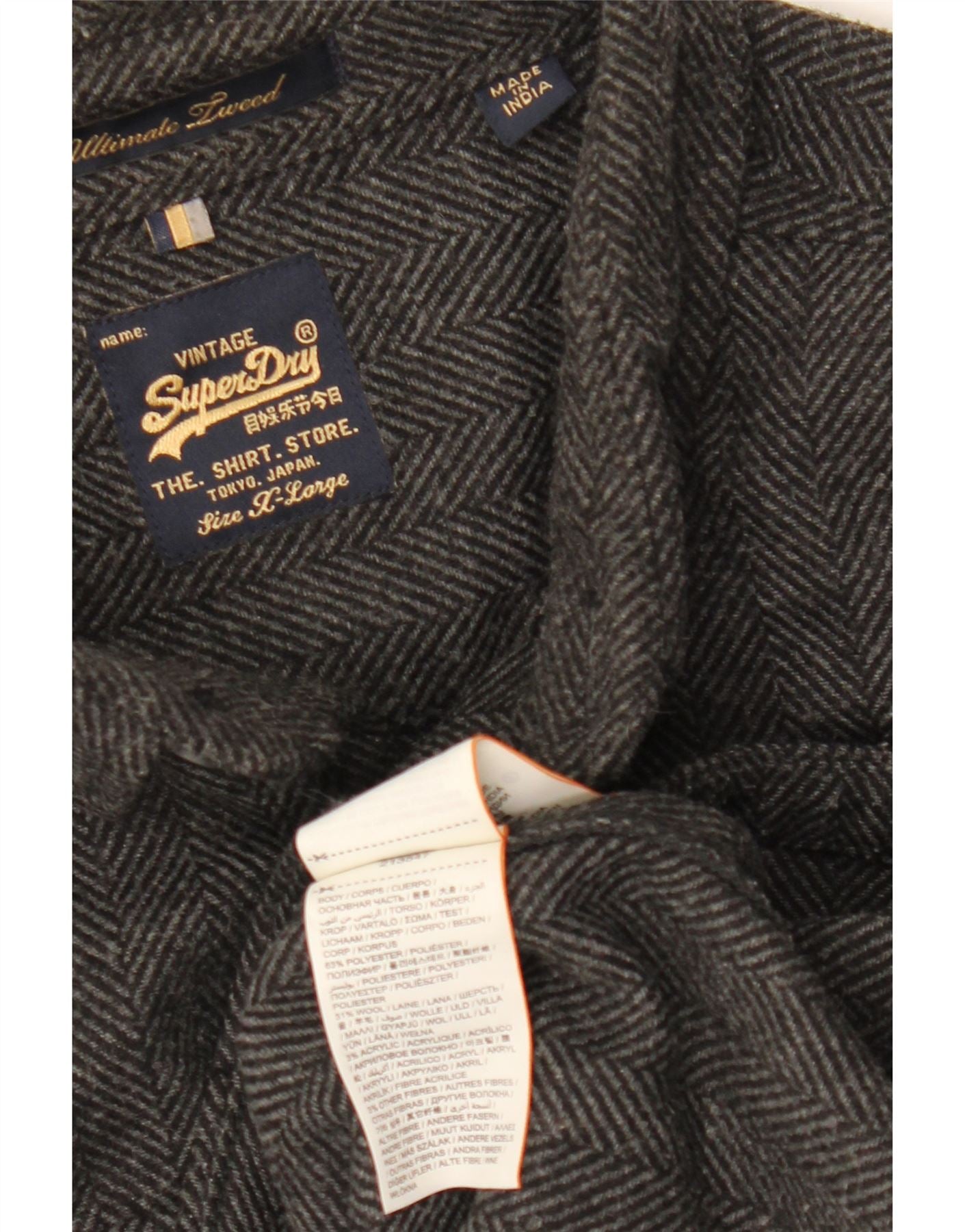 SUPERDRY Мужская фланелевая рубашка XL серого цвета из полиэстера с узором «елочка»